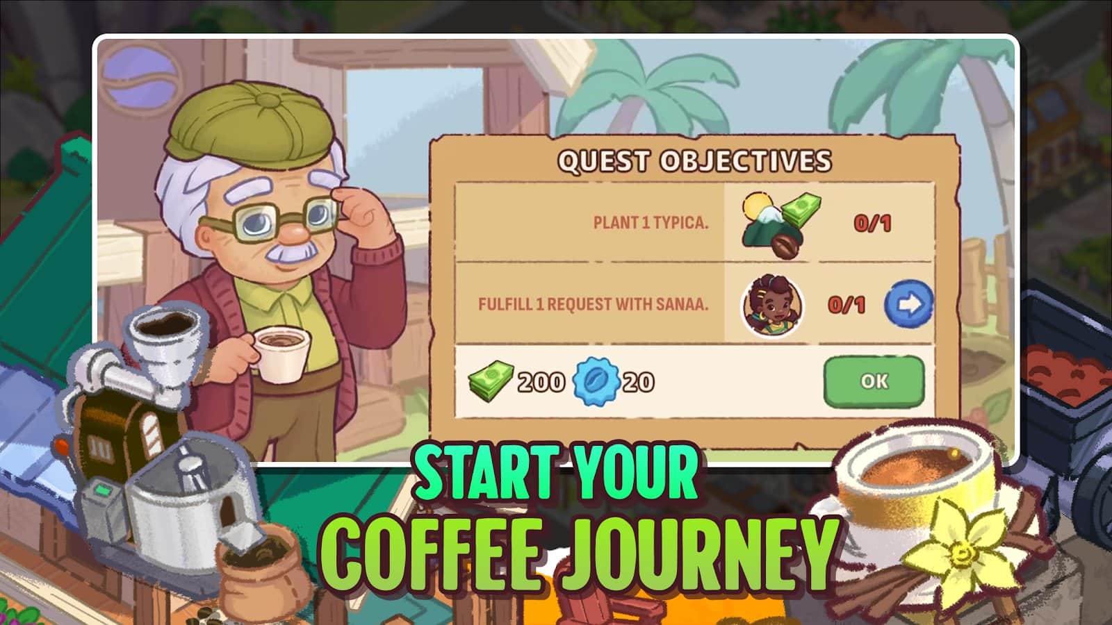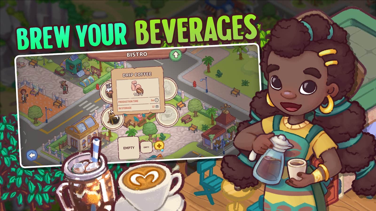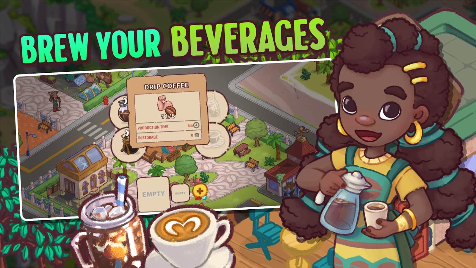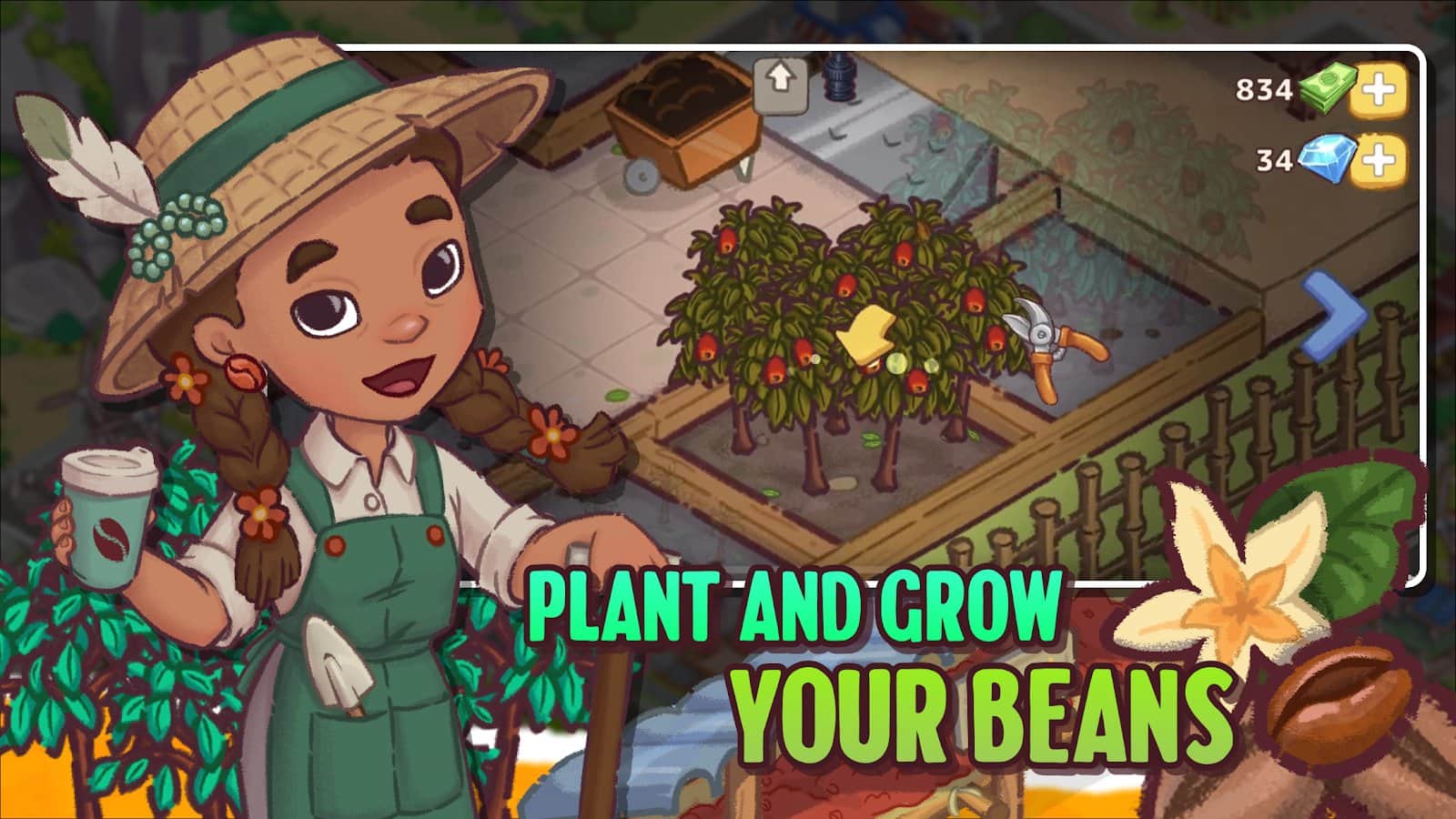Brewtopia: Grow Coffee Beans - Выращивайте и собирайте кофейные зерна, создавайте ароматные смеси и помогайте горожанам избавиться от корпоративного контроля над кофе. Развивайте свою ферму, стройте кофейные фабрики и готовьте вкусные напитки, экспериментируя с редкими сортами. Улучшайте город, очищайте его от загрязнений и создавайте процветающее сообщество истинных ценителей кофе!