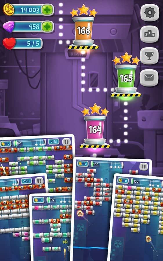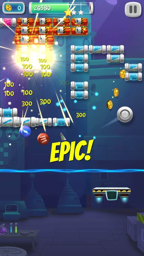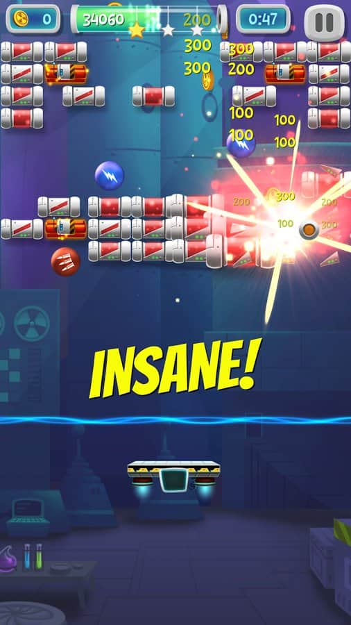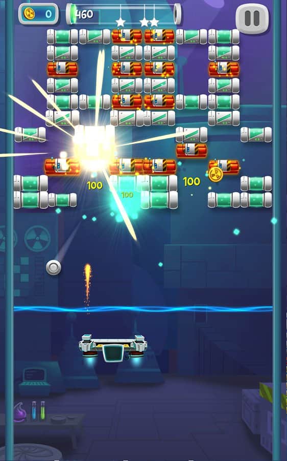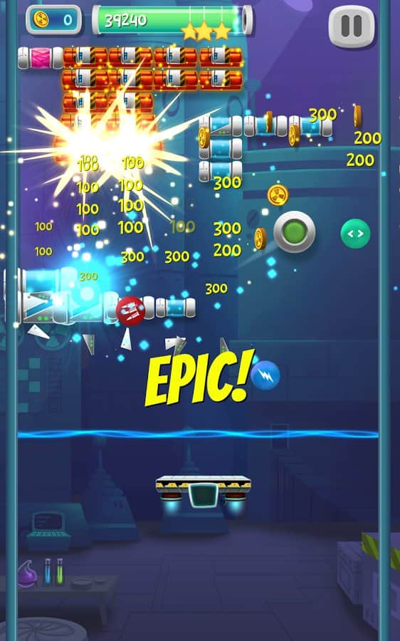 Brick Breaker Lab – веселая игра на андроид, сделанная в жанре арканоид. В этой игре вы будете помогать ученому, очистить свою лабораторию от обезумевшего искусственного интеллекта. С помощью движущейся платформы отбивайте шарик, запуская его вверх, так чтобы он разбивал блоки, заполняющие весь экран. Искусственный интеллект контролирует блоки, которые обладают уникальными свойствами и чтобы их уничтожить вам придется приложить не мало ловкости и умений отбивая шарик. Не дайте шарику упасть вниз, иначе игра для вас закончится. Применяйте многочисленные бонусы и усиления и как можно быстрее проходите уровни.