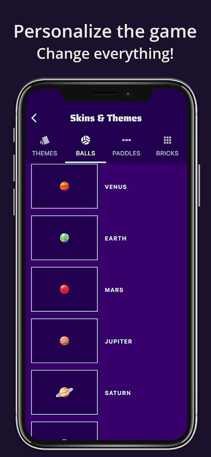 Гибкая кастомизация— более 20 тем и 50 скинов для мячей, ракеток и блоков.