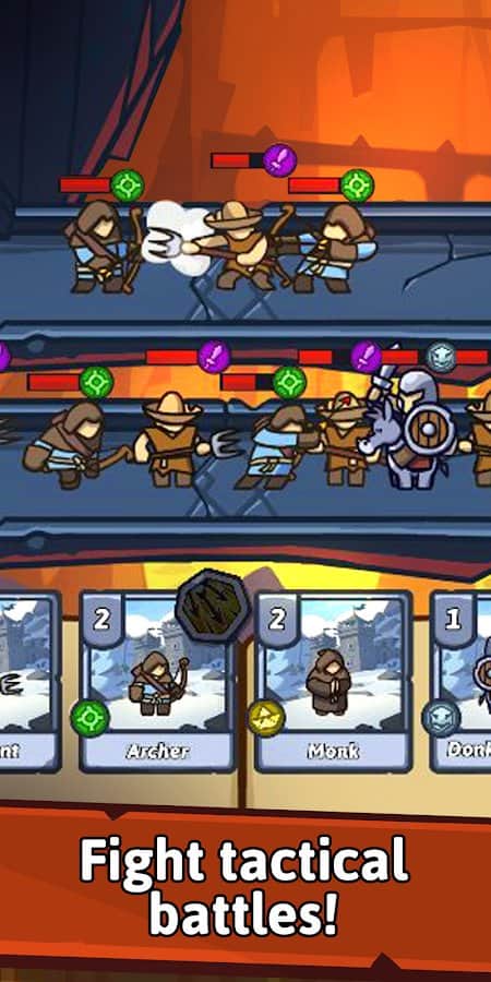 Bridge Battles - Tactical Card RPG – карточная игра на андроид, где вы будете сражаться с соперниками за территории. Соберите свою непобедимую колоду карт и призывайте на поле боя бойцов, которые смогут дать отпор врагам. Используйте имеющиеся в вашем арсенале карты и отправляйте в бой лучников, рыцарей и других воинов и сражайтесь на узком мосту. Все битвы этой игры будет проходить на мостах, соединяющих ваши земли с территорией противников. Так как мосты очень узкие ваши бойцы будет следовать один за другим. Разрабатывайте свою тактику ведения боя и побеждайте противников.
