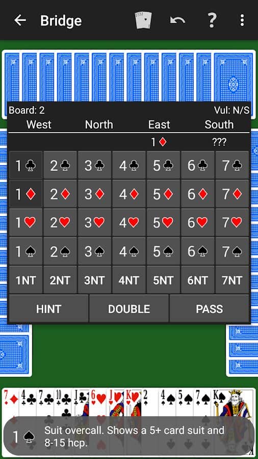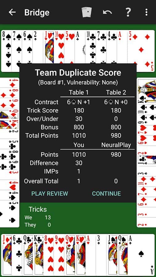 Bridge by NeuralPlay – захватывающая карточная игра на андроид, где вы будете играть против реальных игроков или компьютера. В этой игре вашей главной задачей будет собрать нужную вам коллекцию карт и победить опытных соперников. Выбирайте подходящий для вас режим игры и добивайтесь отличных результатов. Участвуйте в торгах и делайте свои ставки так чтобы обыграть соперника и заполучить больше очков. Играйте в эту игру в любое свободное время и разрабатывайте свою тактику ведения игры. Эта игра отлично подойдет как для телефонов, так и для планшетов.