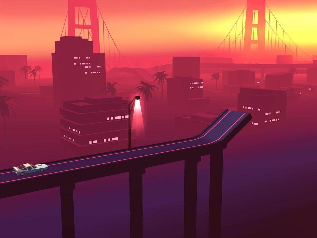 Bridge Jump - автомобильный ранер с изометрическим видом события которого развиваются в недалеком будущем, будущем в котором мир лежит в руинах и по всей видимости наступил настоящий апокалипсис. Ваша задача управляя автомобилем мчаться по автострадам, при этом перепрыгивая разрушенные участки и собирая призы и бонусы. Управление в игре предельно просто, при нажатии на экран машина будет разгоняться, а по средствам свайпов вы будете совершать прыжки.