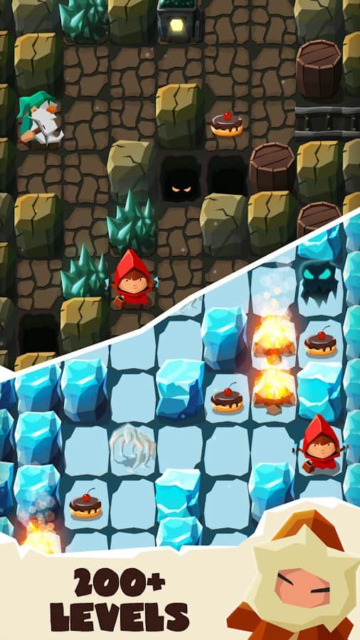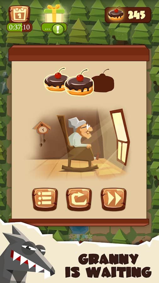 Bring me Cakes - Little Red Riding Hood Puzzle – игра головоломка на андроид, где вы будете помогать Красной Шапочке дойти до бабушки. В этой игре перед вами откроется поле с многочисленными ловушками и опасными врагами. Вашей задачей будет провести Красную Шапочку по опасному лабиринту и собрать все пироги на уровне. Избегайте встреч с волками, медведями и охотниками. С помощью одного прикосновения пальца к экрану управляйте движением девочки и направляйте ее по нужному маршруту. Впереди вас ждет более 200 уровней, множество забавных персонажей и яркая графика.