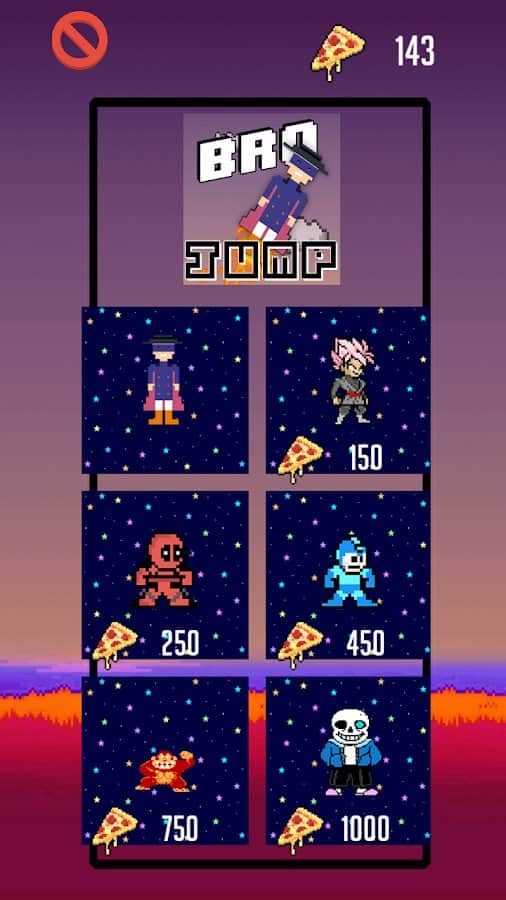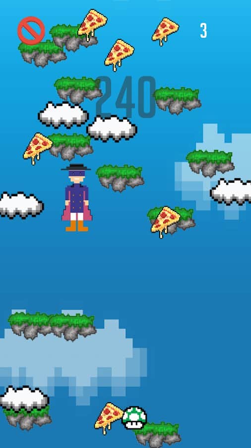 BroJump – занимательная аркада на андроид, где вы будете управлять героем, который поднимается все выше. Эта игра выполнена в 8-битном стиле и порадует игроков своей пиксельной графикой. Управляйте героем и совершайте прыжки по платформам при этом набирая как можно больше очков. Собирайте по пути кусочки пиццы и обходите стороной многочисленных врагов. Управляйте персонажем с помощью наклонов телефона и направляйте его в нужном направлении.
