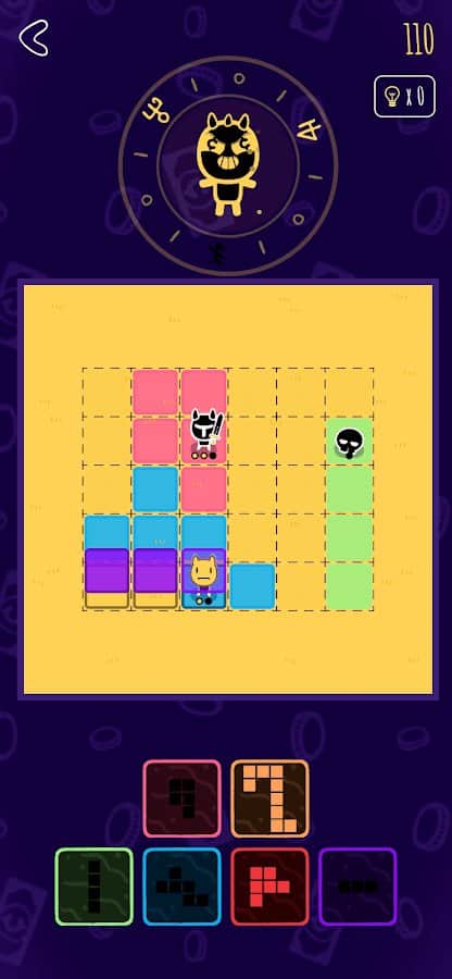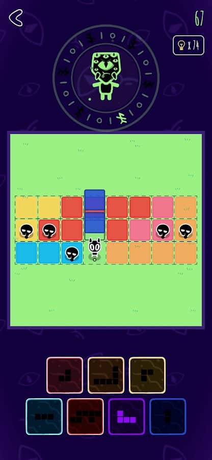 Вот вроде механика проста до безобразия — складывай плитки разных форм и заполняй поле, да так, чтобы деталь пазла могла задеть только одного демона. Это условие как раз и упрощает геймплей, т.к. часто помогает раньше понять "нет, не так всё сложил" и ты продолжишь перебирать.