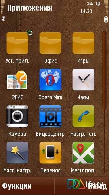 Отличная тема имитирующая коричневую кожу для вашего смартфона с красивыми иконками и отличной читабельность текста.