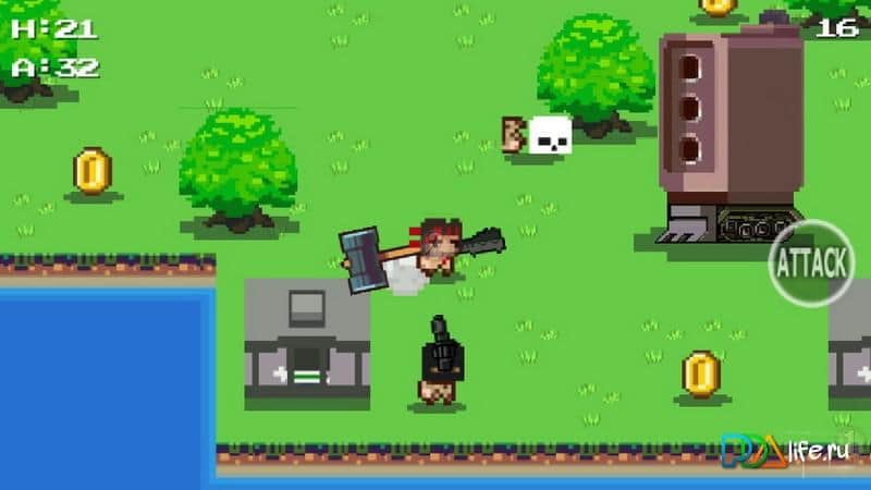 Brutal Force - пиксельный шутер на андроид, с боевиком в главной роли, который бегает по уровням и убивает все что движется. Исследуйте острова, ищите там оружие и бонусы и убивайте врагов с помощью огромной кувалды. Играйте и наслаждайтесь незатейливым сюжетом, где вам за определенный промежуток времени необходимо убить всех врагов на уровне. Выбирайте из двух режимов игры, первый классический переход от легких к сложным уровням, второй randomically когда уровни меняться в независимости от вас.