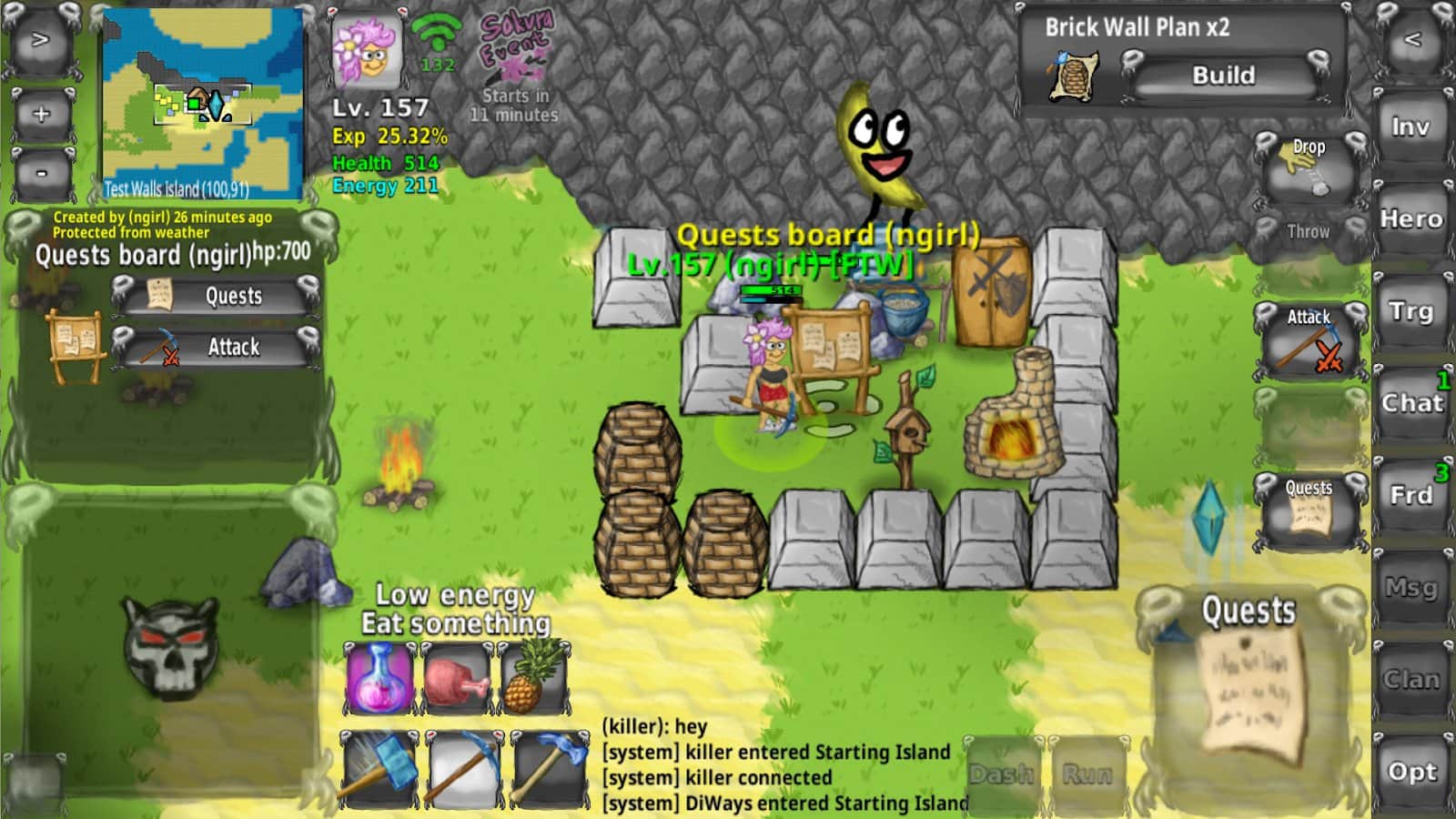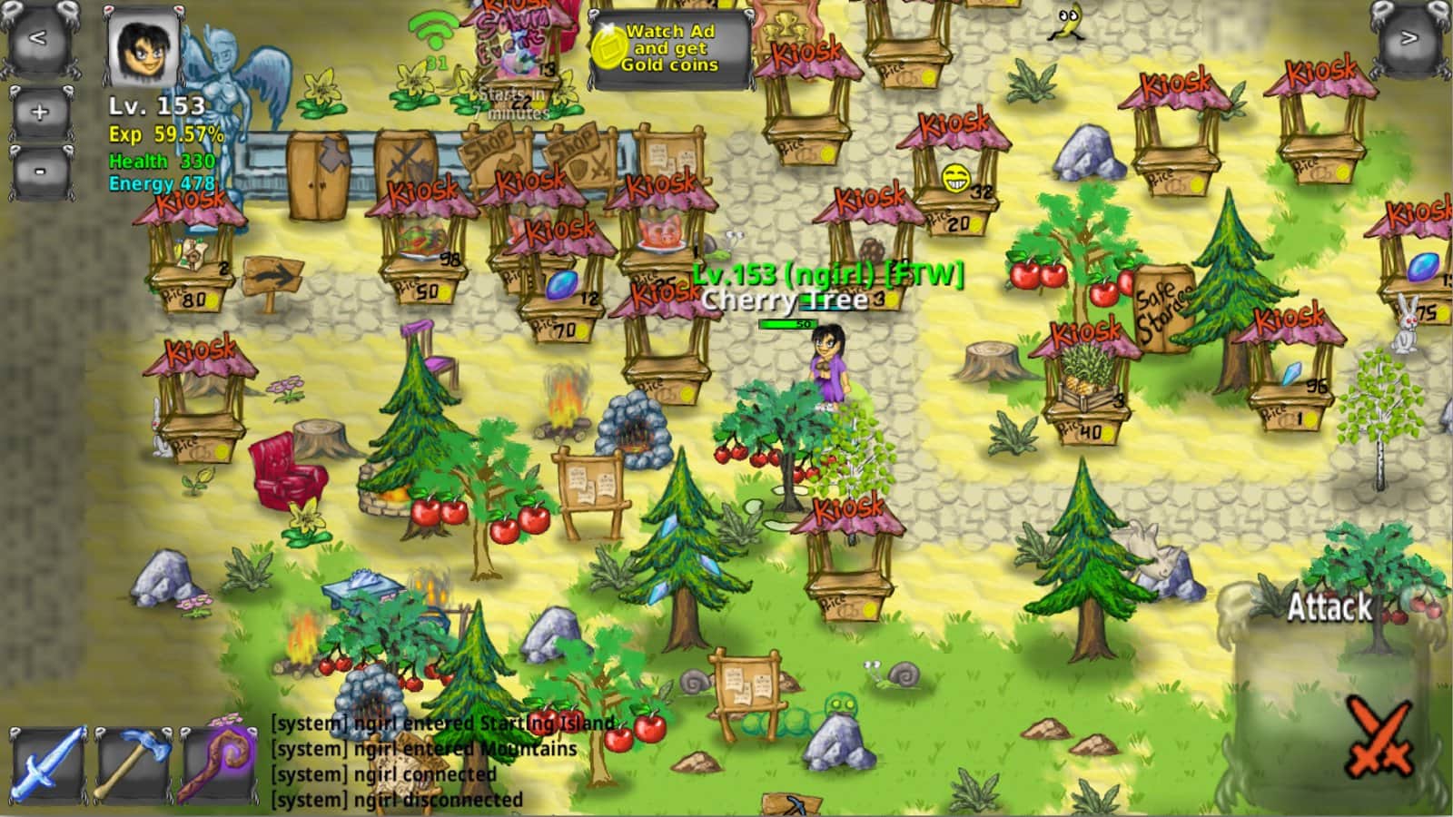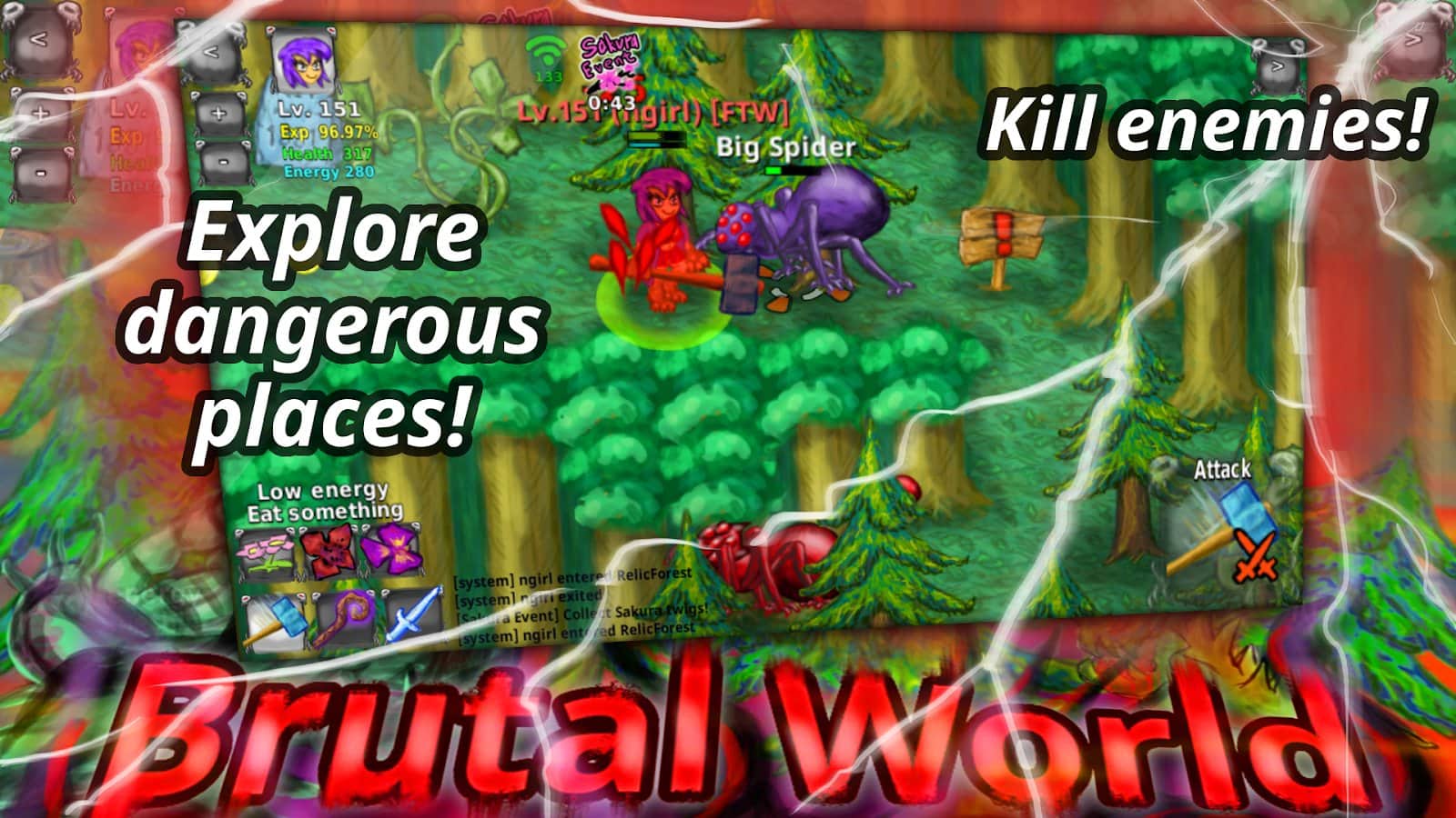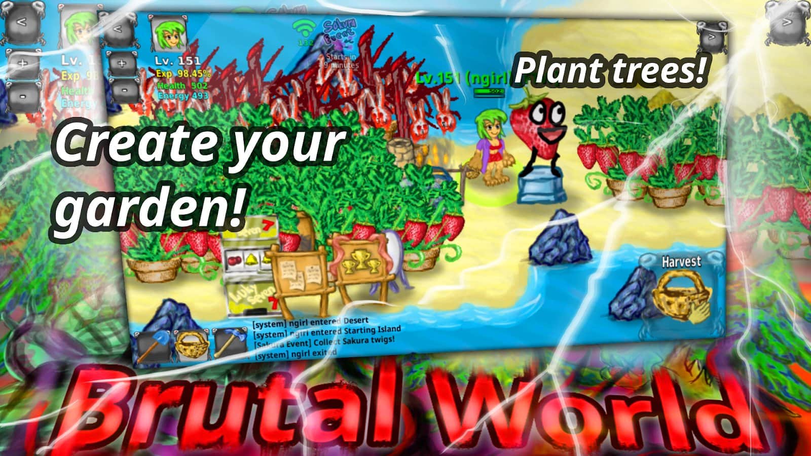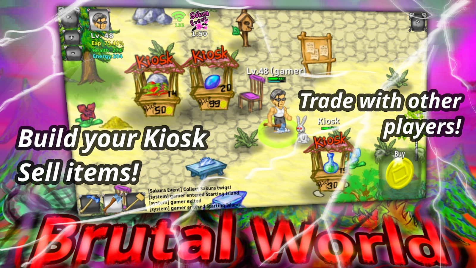 Brutal World online: 2D MMORPG - Создайте себе персонажа и начните жизнь с чистого листа, постепенно наращивая силы и повышая собственный уровень! По мере прохождения игры вы найдете множество новых друзей, построите киоск для продажи товаров, словите рыбу, купите снаряжение, посадите различные деревья в саду, отправитесь в опасные места и уничтожите врагов, а также измените внешний вид главного героя. Используя определенное оружие из 40 других, вы улучшаете особые способности, благодаря каким сможете взаимодействовать с более 150 объектами.