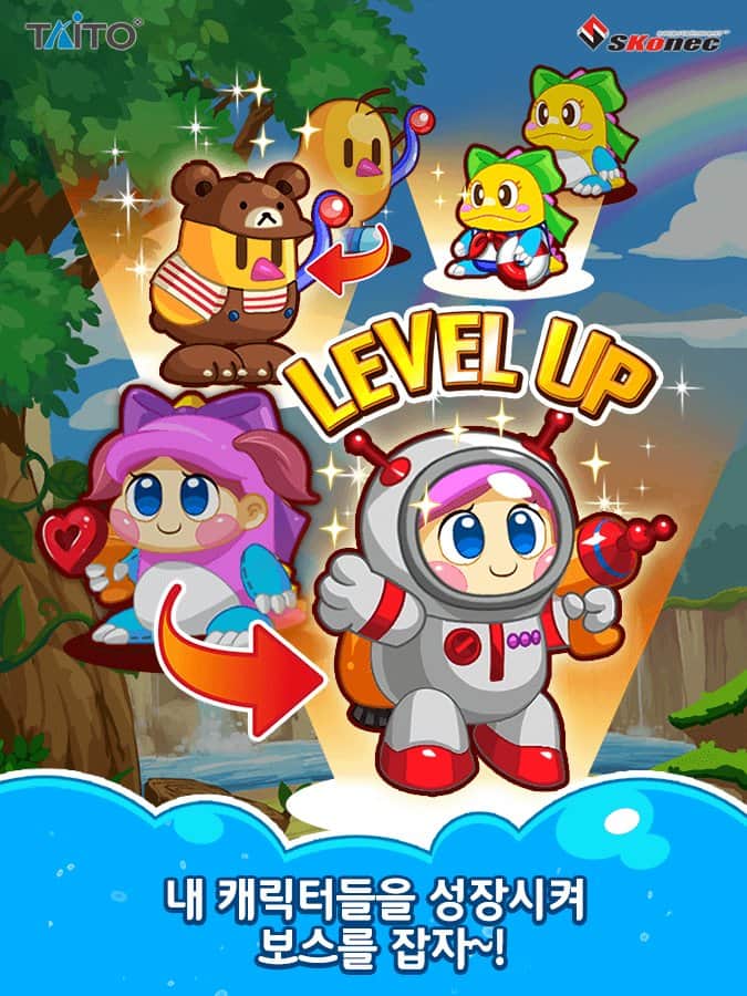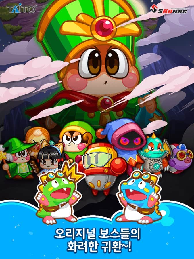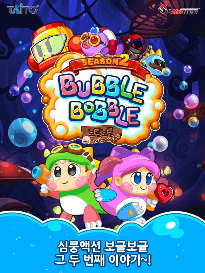 Bubble Bobble for Kakao – корейская игра. Пользующаяся невероятной популярность в Корее. Это своего рода такой экшн – платофрмер. Выполненный в ярком мультяшном стиле. Стрельба, прыжки и многое другое ждёт вас в этой красочной игре. В платформере много персонажей, которых можно прокачивать по своему усмотрению. В игре много полезных предметов которые необходимо найти. Обширные территории, большое количество карт, которые будете проходить с большим удовольствием. Состязание с друзьями и сравнение полученных результатов. P.S. для игры требуется аккаунт Kakao (можно зарегистрироваться через саму игру или на сайте)