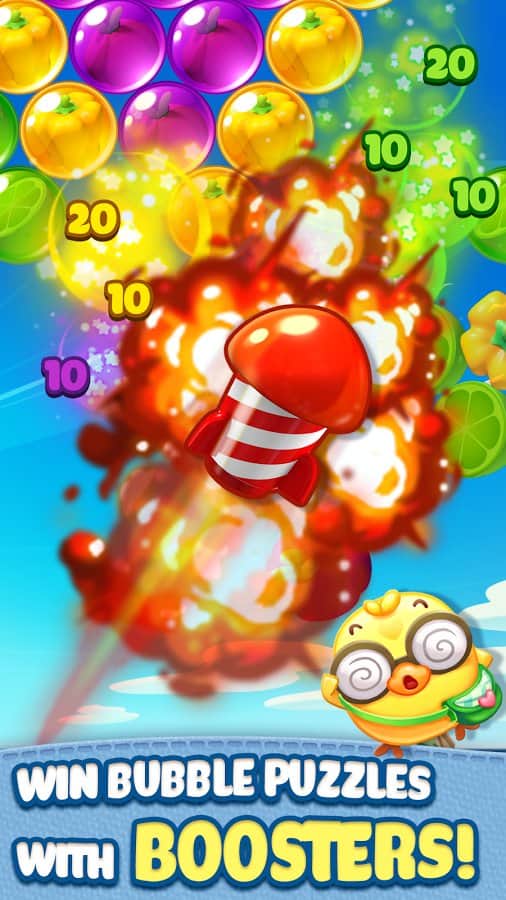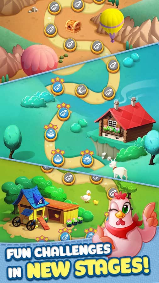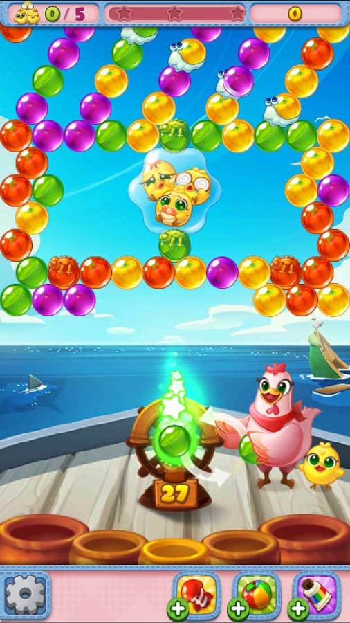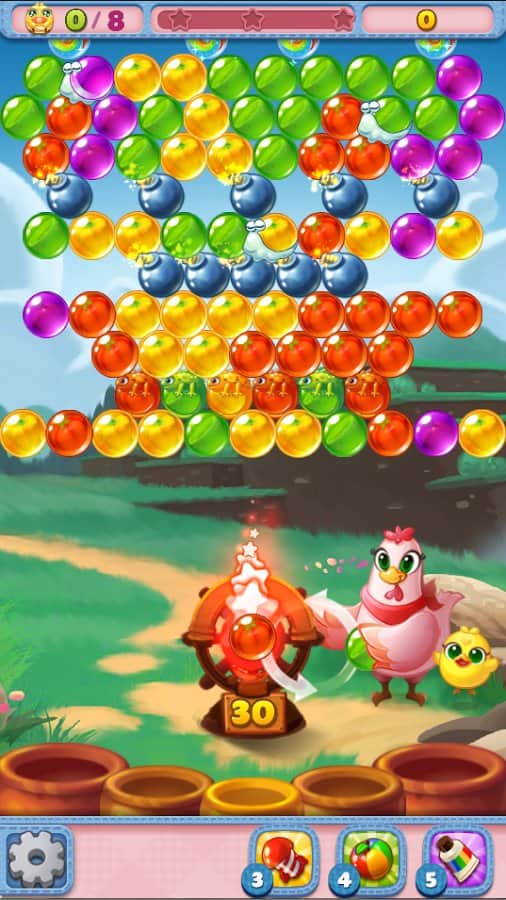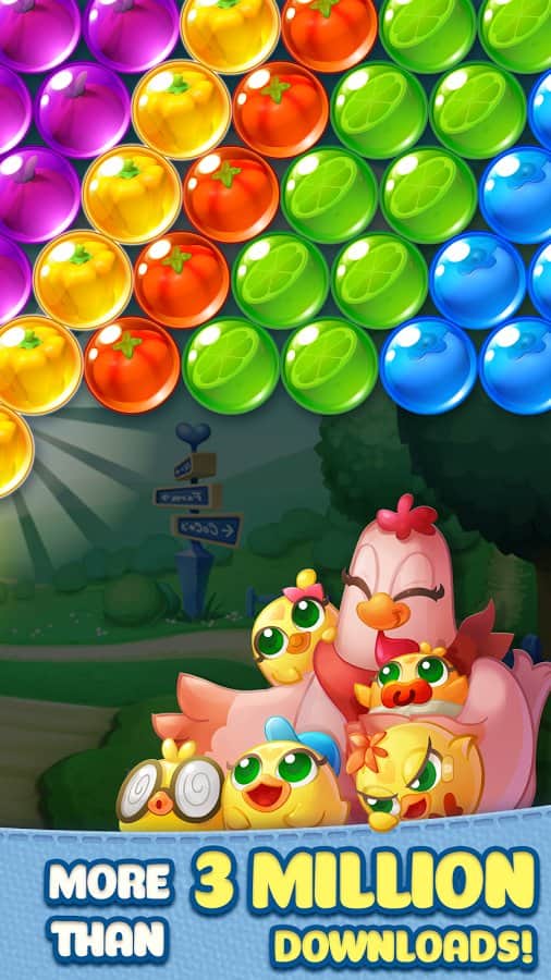 Bubble CoCo: Color Match Bubble Shooter – игра на андроид где вы окажитесь на волшебной ферме и будете стрелять разноцветными пузырями. В этой игре вы будете помогать матери-курице побеждать коварного лиса и спасать своих цыплят. Стреляйте разноцветными пузырями в скопление их наверху и помогайте курице победить всех врагов и освободить своих цыплят из плена. Составляйте ряды из разноцветных пузырей и наслаждайтесь красочными и разнообразными уровнями игры. Применяйте в действии многочисленные и разнообразные режимы и наслаждайтесь простым и понятным управлением. Получайте награды и проходите новые миссии игры. Играйте со своими друзьями и добивайтесь отличных результатов.
