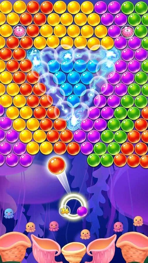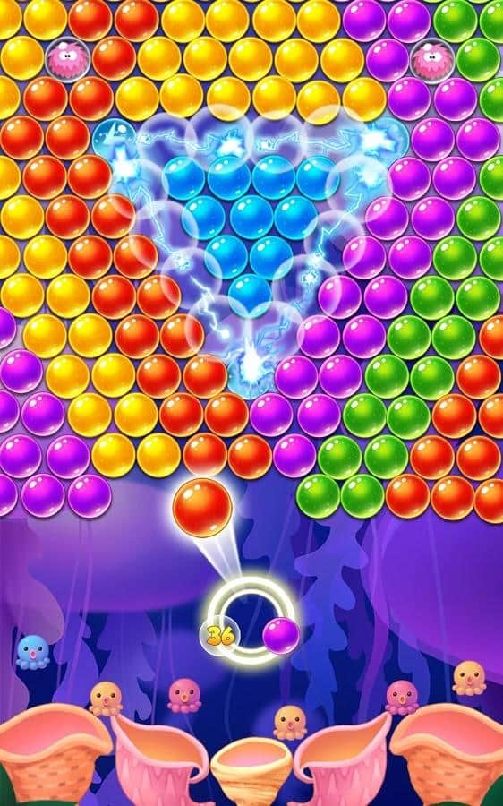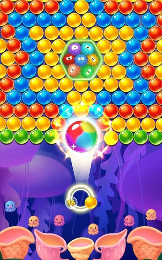 Океан сегодня скрывает еще много тайн, несмотря на его постоянное изучение. Сокровищ на его дне много, остается только найти их в красочной игре Bubble Shooter! Яркий интерфейс не даст заскучать, а интересные стратегии стрельбы шарами по преградам потребуют логического мышления. Приступай сейчас к прохождению разных уровней и быстрее своих друзей добирайся до самого дна. А идти придется долго, ведь ко дну океана ведет больше 200 уровней с разной сложностью решения. Спасай морских животных и получай вознаграждение!