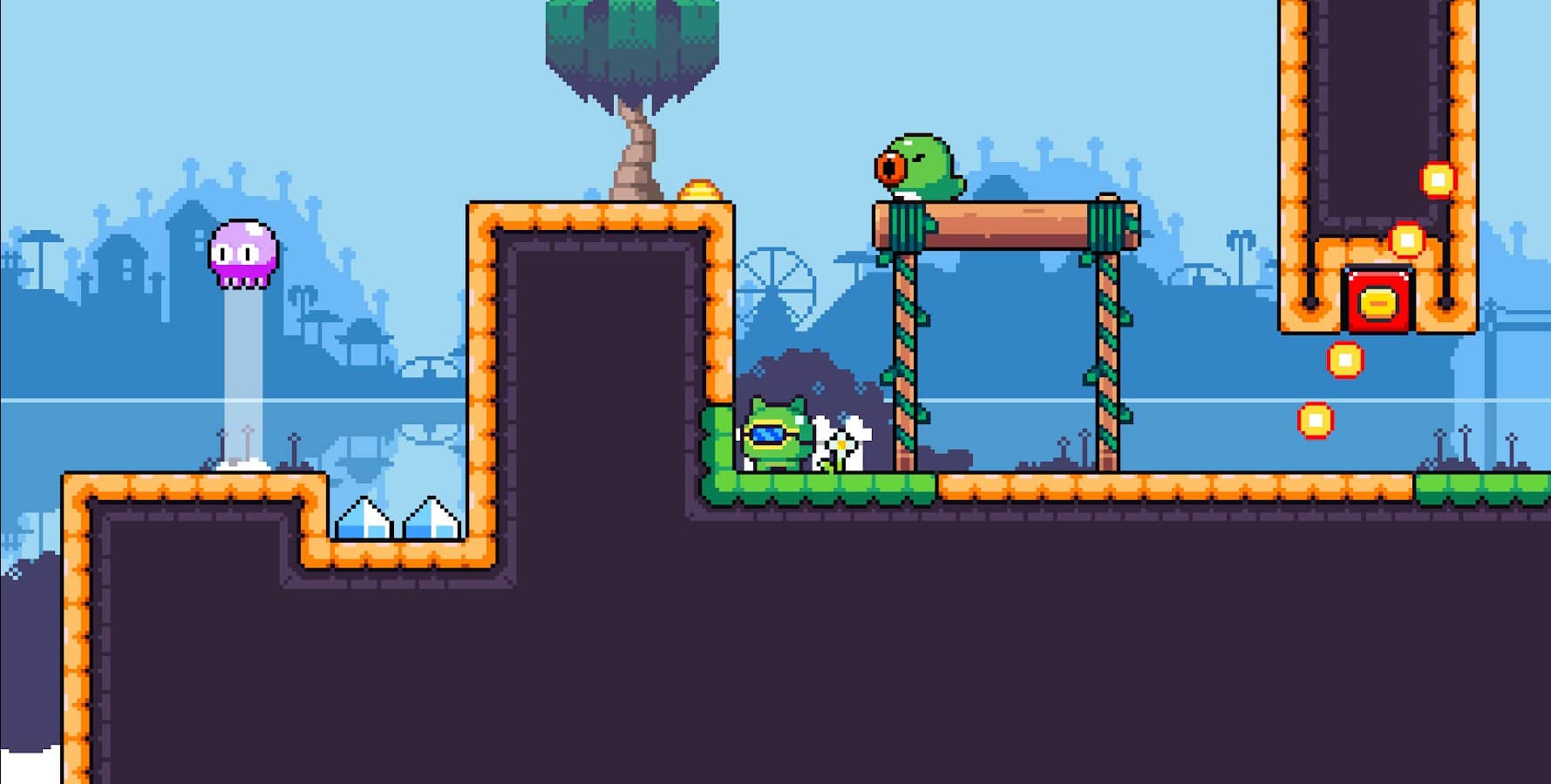Bubble Tale - Pixel Game – симпатичный платформер на андроид, с механикой пузырьковых прыжков. В этой игре вы перенесетесь в прекрасный мир, крошечных существ которым будете помогать побеждать монстров и сильных боссов. Путешествуйте по пиксельному миру и сражайтесь с врагами при этом собирая бонусы и усиления. Побеждайте более сильных врагов и открывайте для себя новые уровни и готовьтесь к встрече с боссами. Получите в награду маленькую фею с ее волшебной магией, которая будет сопровождать вас на всем пути.