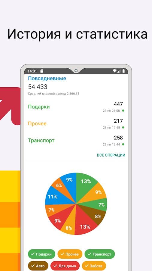 Подробная статистика по всем денежным операциям;