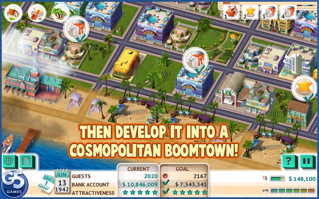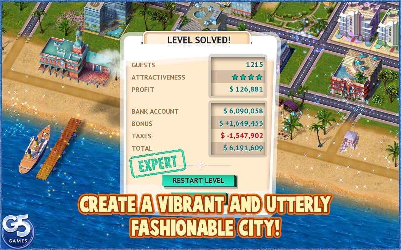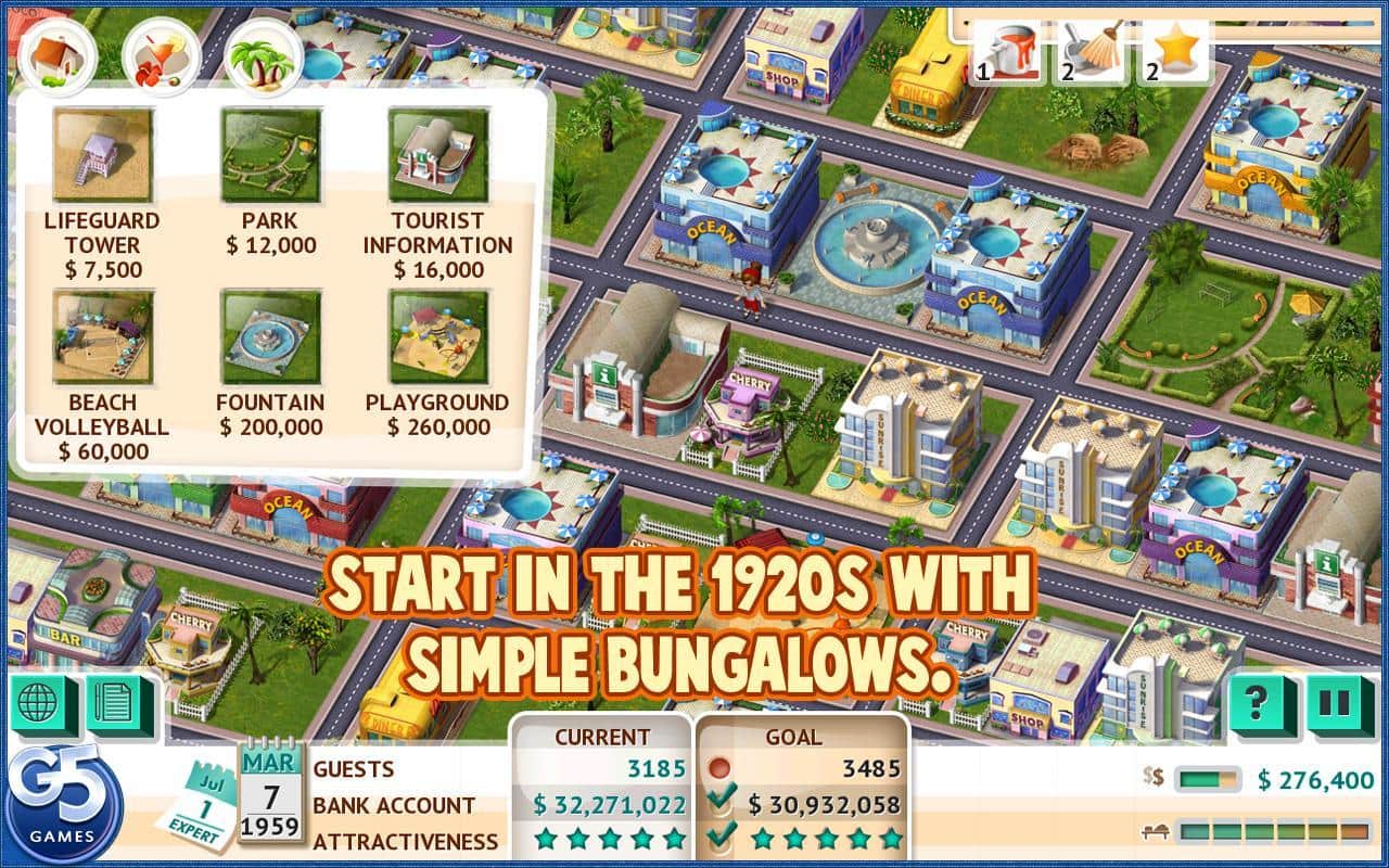 Построй-ка:Пляжный Курорт - Увлекательная экономическая стратегия на андроид от компании G5. Вам предстоит построить свой собственный курортный городок на побережье моря. Ваш город начнет новую жизнь с обычных маленьких бунгало, и достигнет современных небоскребов, отелей и гостиниц. А также дорогие рестораны, магазины и бутики. Пройдите эру создания нового города на протяжении шестидесяти увлекательных уровней.