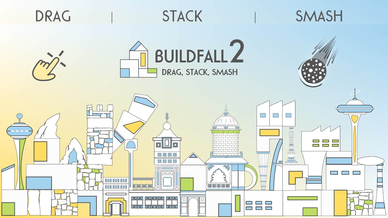 BuildFall 2: Drag, Stack, Smash - игра раскрывает творческую сторону вашего мозга. В вашем распоряжении блоки различной формы и цвета, с помощью них вам необходимо строить дома. После того как всё готово можно смело разнести постройки на кусочки, для чего это всё непонятно, но главное весело.