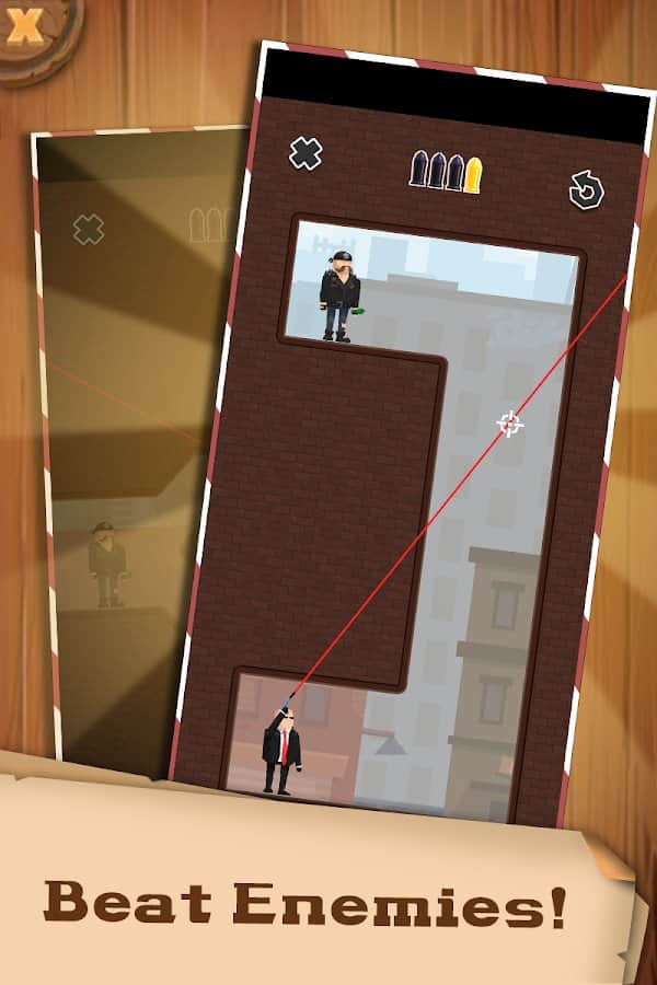 Bullet Carom – приключенческая игра на андроид, где вы будете путешествовать по всему миру и сражаться с бандитами. В этой игре вы будете выступать в роли шпиона, который должен выслеживать и убивать своих врагов. Для уничтожения врагов вам понадобится точная цель и лазерная фокусировка. Отправляйтесь в путешествие по разным локация и спасайте заложников и других людей от врагов, ниндзя и многих других плохих парней. Используйте уникальное оружие такое как гранатомет в борьбе с врагами. На прохождение уровней у вас будет ограниченное количество пуль так что тратьте их с умом. Учитывайте физику пуль, которые будут рикошетить об преграды и постарайтесь спланировать выстрел чтобы поразить всех врагов одним выстрелом.