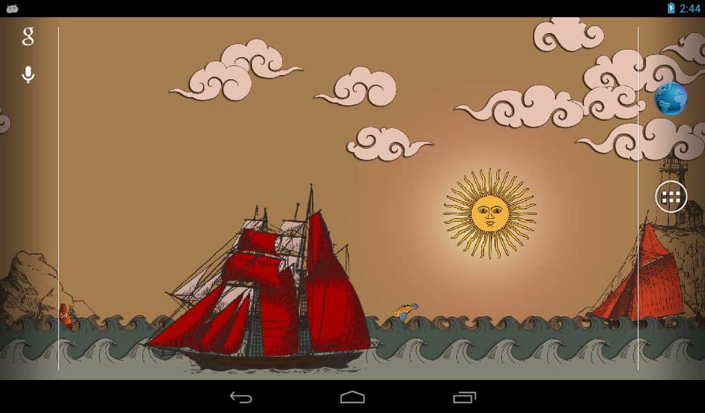 Бумажное Море Живые Обои – красивые и ненавязчивые живые обои для андроид устройств от разработчика happyLWP. Данные обои можно наполнить и настроить на свой вкус от смены времени дня и ночи, старинных кораблей, вида облаков, выпрыгивающих рыбок до количества звезд ночью, а так же многое другое. Сделайте экран своего устройства весьма оригинальным установив обои "Бумажное Море" и наслаждайтесь плывущими кораблями на морском просторе.