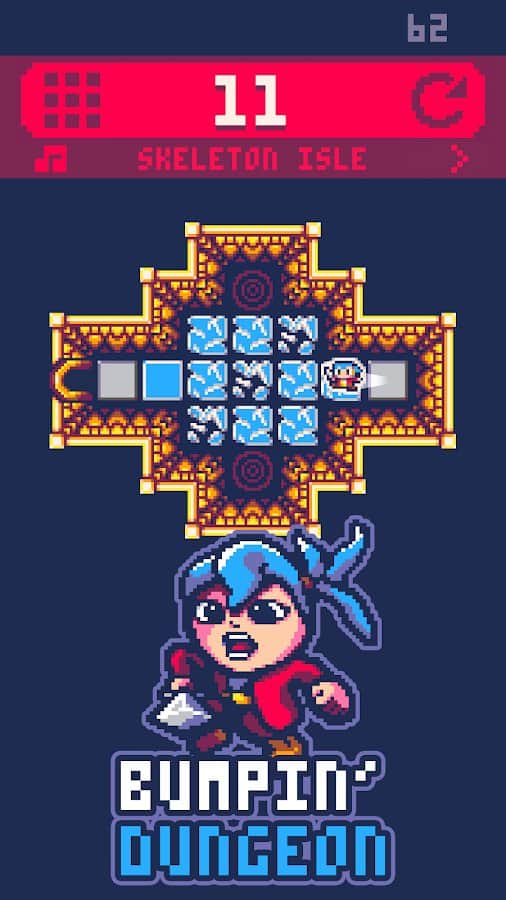 Bumpin' Dungeon - позиционная игра головоломка с элементами рогалика в которой вам предстоит помочь девочке по имени Хенна пройти 120 этапов и найти выход из подземелья, при этом каждая локация разделена на клетки по которым вам и предстоит перемещаться при этом постаравшись найти самый короткий путь и избежать ловушек, а так же уничтожить врагов. Стильная пиксельная графика только дополняет общую картину, а элементы рогалика повысят сложность.