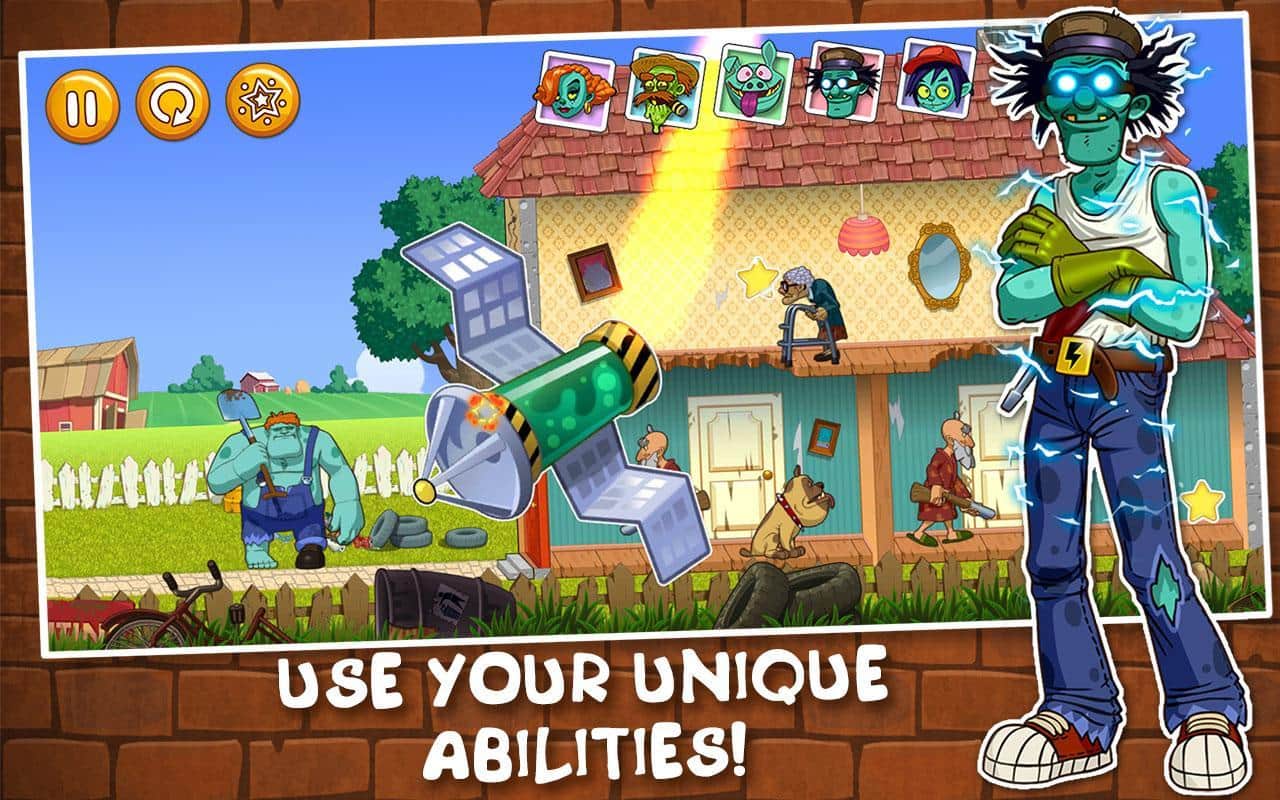 Bunch of Zombies - игра на андроид, в которой спецслужбы похитили у семьи зомби их любимую дочь и они начинают мстить всем живым людям. Веселая головоломка, в которой вам предстоит кидать зомби с помощью лопаты в людей, после чего они обращаются в мертвецов. Рассчитывать силу удара и траекторию полета чтобы попасть точно в цель и преодолеть бесчисленные препятствия.