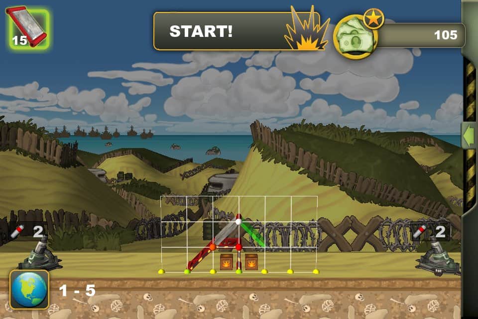 Bunker Constructor – строительная стратегия на андроид, где вам предстоит возводить прочный бункер. На протяжении 45 уровней вашей задачей будет построить железобетонный бункер, используя для этого различные материалы такие как: стальные блоки, бетон и блоки с броневой защитой. Для достижения лучшего результата комбинируйте предложенные в игре материалы и получайте значительно лучший результат. После постройки бункера на него будут нападать враги, обстреливая его при помощи артиллерии, танков и бомб. Приложите максимум усилий, чтобы одержать победу над врагом и не дать ему разрушить ваш бункер.