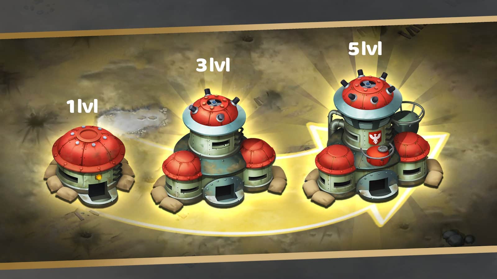 Мы будем солдат переводить из бункера бунке улучшать бункеры, тем самым нападаю на другие бункеры. Получаю всё больше войска и опять нападать на другие бункеры.