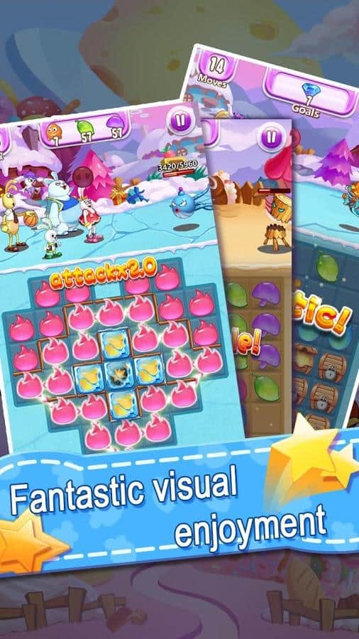 Bunny Line – игра с увлекательным игровым процессом где вы будете помогать милым животным защищать свою деревню. В этой игре вашей задачей будет соединять между собой различные объекты и взрывать их, тем самым наделяя героев энергией необходимой для сражений. Дайте отпор всем монстрам нападающим на вашу деревню и составляйте цепочки из трех и более объектов. Тренируйте свою отличную реакцию и скорость пальцев, составляя цепочки и побеждая опасных монстров. Выполняйте все миссии и задания игры и получайте доступ к новым уровням, которых в этой игре представлено более 300. Играйте в эту игру и поднимайтесь все выше в таблице лидеров.