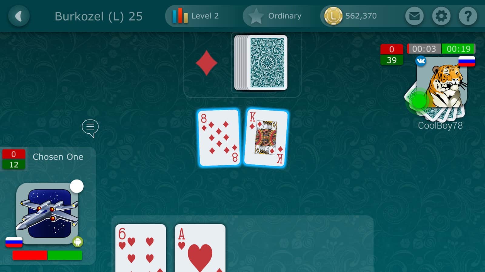 Буркозел – популярная карточная онлайн игра с реальными людьми. Играйте в знакомую с детства игру и общайтесь с игроками на любые интересные темы. Если вы не знаете правил, вы всегда сможете пройти обучение в игре.