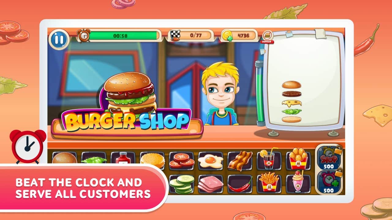 Burger Shop - top cooking game – игра на андроид, где вы будете управлять рестораном и готовить различные бургеры для голодных клиентов. Выступайте в роли шеф-повара ресторана и готовьте различные блюда и радуйте своих клиентов разнообразными блюдами из свежих продуктов. Вашей главной задачей будет готовить блюда как можно быстрее и не заставлять клиентов ожидать слишком долго своего заказа иначе они уйдут недовольные и не оставят чаевых. Развивайте и расширяйте свой бизнес и создавайте новые рецепты, которые обязательно приглянуться вашим посетителям.