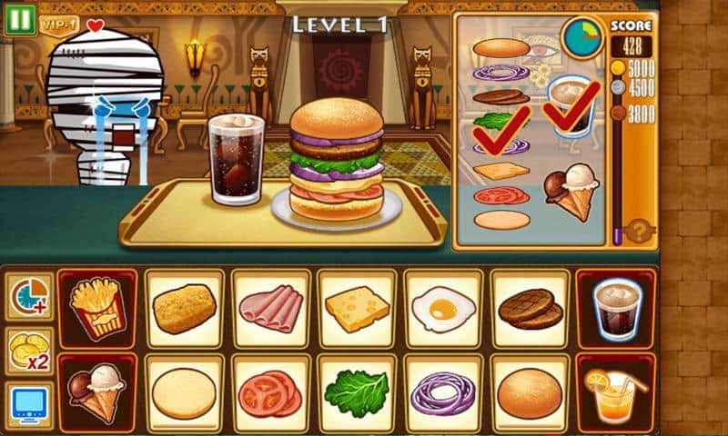 Burger Worlds – увлекательная игра на андроид, где вы станете владельцем небольшого кафе. В этой игре вашей главной задачей будет готовить для своих клиентов и посетителей гамбургеры, хот-доги, картофель фри и другие блюда быстрого приготовления. Обслуживайте своих клиентов как можно быстрее не заставляя их долго ждать своего заказа. Используйте для приготовления блюд различные ингредиенты такие как: хлеб, помидоры, яйца, мясо, сыр и огурцы. Проходите все захватывающие уровни игры и зарабатывайте как можно больше денег, чтобы открыть новые рестораны и кафе в разных уголках мира. Получайте как можно больше баллов и соревнуйтесь со своими друзьями.