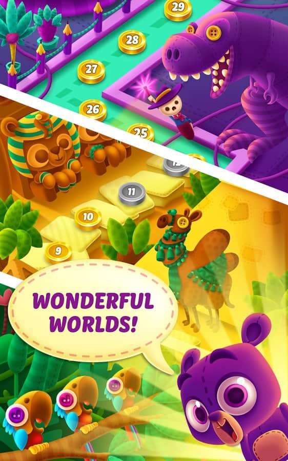 Button Blast – головоломка на андроид, где вы окунетесь в мир разноцветных пуговиц. В этой игре вы вмести с забавным плюшевым медведем будете собирать одинаковые по цвету пуговицы и убирать их с игрового поля. Составляйте ряды из трех и более пуговиц одного цвета и взрывайте их, тем самым набирая очки. Каждый новый уровень игры порадует вас уникальными заданиями, где вам необходимо будет собирать пуговицы определенного цвета. Старайтесь проходить уровень за меньшее количество ходов, потому что их количество будет ограничено. Применяйте полезные бонусы и усиления и наслаждайтесь захватывающим игровым процессом.