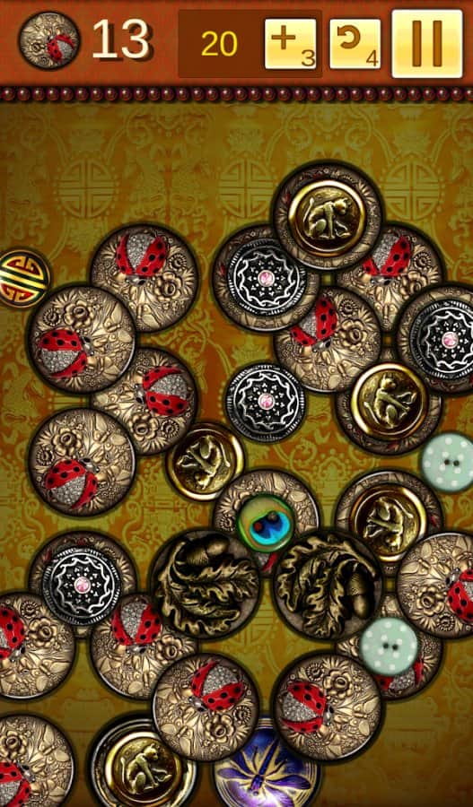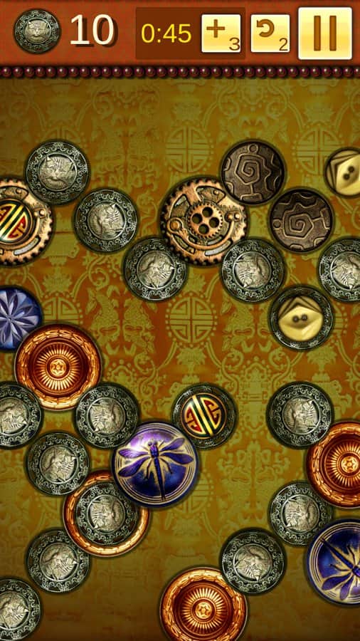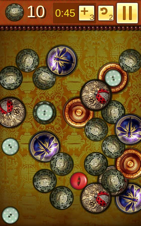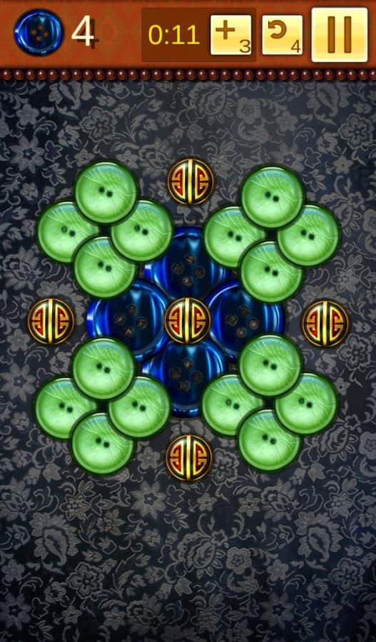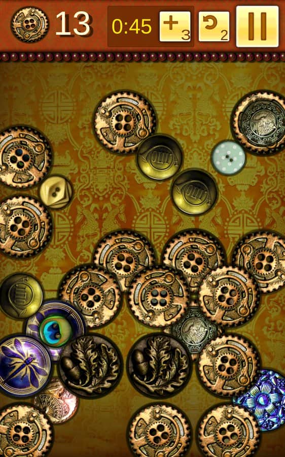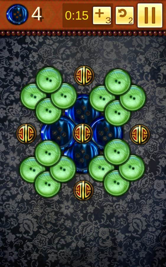 Buttons Match – игра головоломка на андроид, где вам предстоит находить и убирать одинаковые пуговицы с поля. Цель игры очень проста вам необходимо полностью очистить поле от пуговиц, за минимально короткое время. Убирайте пуговицы только парно и те, которые не прикрыты сверху другими пуговицами. Применяйте всю свою наблюдательность и сосредоточенность, чтобы отыскать пару пуговице и справиться с поставленной задачей быстро. Выбирайте понравившийся режим игры и наслаждайтесь часами проведенными в этой игре с большим количеством разнообразных уровней.