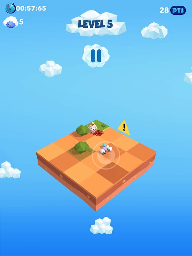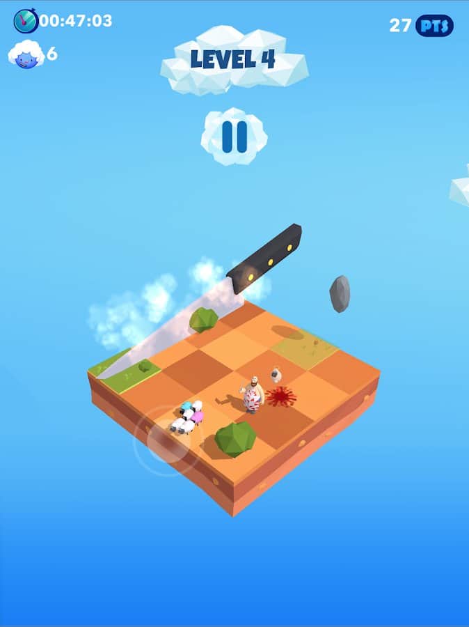 Bye Bye Sheep – увлекательная и веселая игра на андроид, где вы будете управлять стадом овец. Вашей главной задачей будет провести своих овец по опасным локациям стараясь достичь вкусной и сочной травы. На вашем пути то и дело будут появляться многочисленные преграды в виде безумного мясника, гигантского ножа, катающихся валунов и падающих метеоритов. Вам предстоит спасать глупых овец от гибели и тем самым набирать очки и бонусы. Тренируйте свою отличную реакцию и проведите овец по всем зеленым клеткам поля. Открывайте для себя новые уровни, которые порадуют вас новыми ловушками.