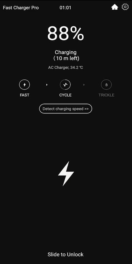 Я купил телефон с батареей 4250 и экраном асолед.Благодаря этому приложению, телефон заряжается от 1% до 80-90% за 25 полных минут.Я выходу на болкон перекупить и оставляю его на зарядке, он за 5 мин заряжает 20%.Прога глушит все приложения в фоне во время зарядки.