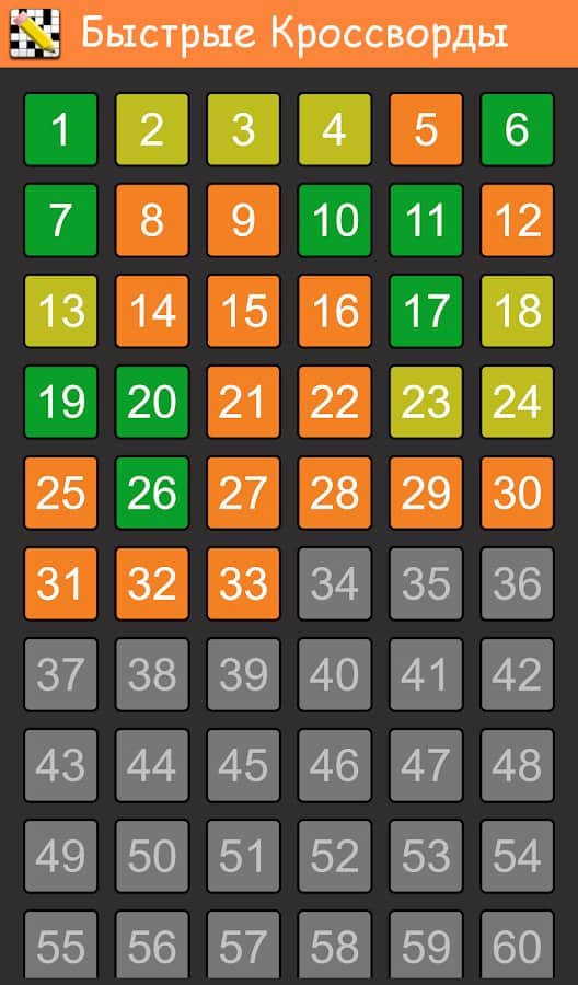 Быстрые Кроссворды на русском – отличная игра на андроид, для любителей разгадывать кроссворды. В этой игре на вашем экране появиться кроссворд и вашей задачей будет его разгадывать, тренируя свою сообразительность и проверяя знания. В эту игру вы сможете играть на ходу, и она не займет у вас много времени. Главными особенностями этой игры является наличие русского языка, моментальной проверкой ваших ответов и возможность воспользоваться подсказками. Всего в игре вы найдете 6000 уникальных вопросов, 712 кроссвордов и огромный список слов.