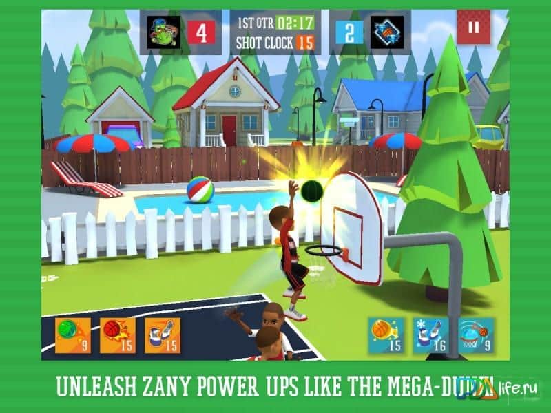 Отдельно стоит отметить тот факт что игра полностью лицензирована Баскетбольной Ассоциацией и как следствие вам будут доступны большинство игроков лиги такие как Stephen Curry, LeBron James, Kevin Durant, Kobe Bryant, Carmelo Anthony, Dwight Howard, Damian Lillard, Demar DeRozan, Kenneth Faried, Dwayne Wade, Blake Griffin, Derrick Rose и многие другие. Не последнее место в общей картине игры занимает и оригинально графическое решение в мультяшном стиле.