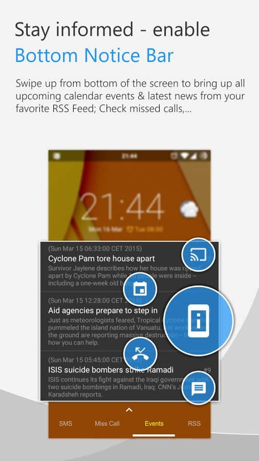 C Locker Pro - Это программа которая позволит вам кастомизировать экран блокировки вашего устройства. На экран блокировки вы можете добавить 8 типов виджетов приложений, уведомления facebook, google +, whatsapp... в целом, все поддерживаемые, RRS-каналы (СNN, BBC или другие), список напоминаний событий из календаря. Также при разблокировании вы можете получить быстрый доступ к операциям вашего устройства. Для быстрого доступа можно задать более 30 операций прямо при разблокировании. Можно так же добавить пароли на отдельные приложения.