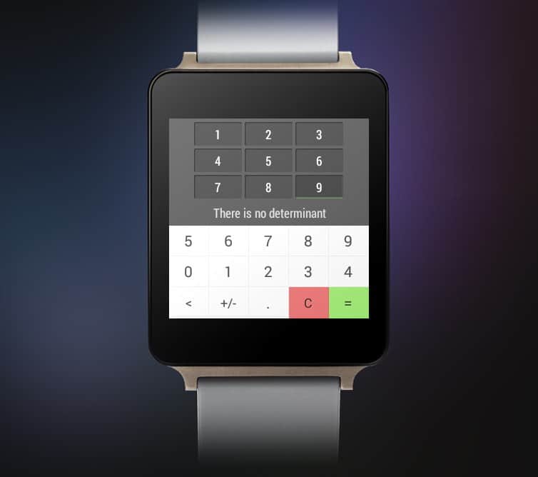 Калькулятор на часах — одна из немногих по-настоящему полезных вещей. Наш герой обладает не только всеми необходимыми базовыми функциями, но и включает расширенные, в том числе, может считать матрицы и уравнения. Кроме того, имеется встроенный конвертер величин, что тоже бывает полезно. Единственный серьезный недостаток программы в том, что она адаптирована под квадратные экраны, а на круглых часть кнопок может срезаться, это обещают поправить в последующих обновлениях.