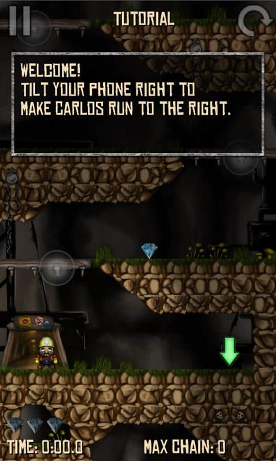 Call of Carlos - побывайте в Мексике вместе с главным героем игры для windows phone 7. Точнее даже не в самой мексике, а в ее подземных недрах. Итак, некий мексиканский шахтер Карлос после долгих поисков, наконец-то нашел целые лабиринты шахты, наполненные алмазами и кристаллами! Казалось бы фортуна улыбнулась! Но не все так просто - есть риск утонуть в раскаленной лаве, которая очень быстро поднимается, заполняя все проходы вязкой горячей смесью...Ах, как не хочется поджариться, но и упустить драгоценные камни никак нельзя! Помогите Карлосу собрать все кристаллы и выбраться не поверхность живым и невредимым! Управление в игре осуществляется акселерометром. Для продвижения вверх используется кирка, а для бега достаточно повернуть телефон вправо или влево.Графическое исполнение игры выполнено на высоком уровне, в стиле старых добрых платформеров.