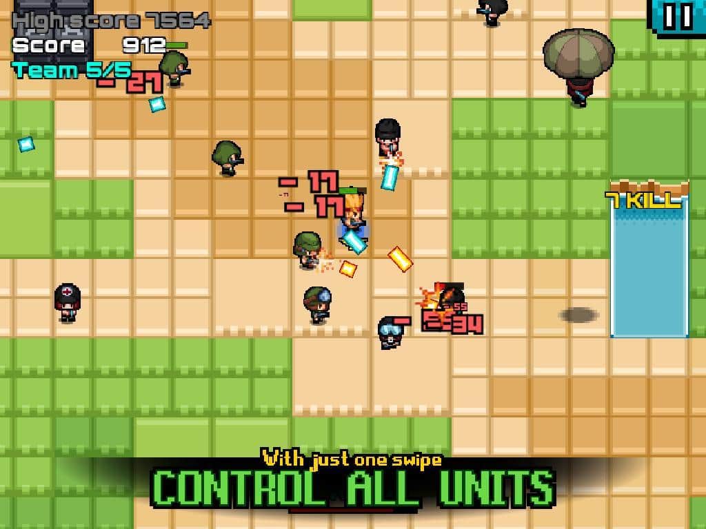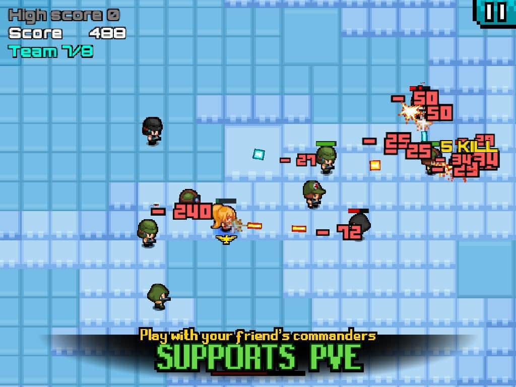 Наверно трудно будет найти игрока который бы хотя бы раз в жизни не играл в "Змейку" или ее аналоги. Эта игра вот уже несколько десятков лет прочно занимает первенство среди тайм-киллеров. Конечно же со временем сама змейка видоизменилась но игровая механика осталась прежней. Разработчики игр в свою очередь раз от раза не устают использовать геймплей популярной аркады в собственных проектах. Call of Commander - экшен-аркада в пиксельном стиле. Геймплей заключается в следующем, управляя отрядом, который прочно связан со своим командиром, то есть вами, ваша задача бегая по игровому полю уничтожать солдат противника. Ваш отряд в свою очередь будет представлять что-то вроде змейки, что конечно же скажется на управление и игровом процессе в целом.