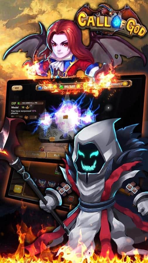 Call Of God - давным-давно, в мире был только один континент и на нём жили боги. Но в один прекрасный день их амбиции и земное желание власти погубило созданную раннее идиллию. Весь мир в войн и на гране полного краха. В итоге произошёл взрыв и огромный континент был поделён на четыре части. После чего все боги ушли, а человек пришёл на эти земли унаследовав знания богов и их амбиции. Опять налились войны, драки, и другие нежелательные атрибуты полного хаоса. По мере прохождения игры вам будут открываться новые возможности ранее не доступные на начальных этапах, что сделает игру ещё интереснее и увлекательнее.