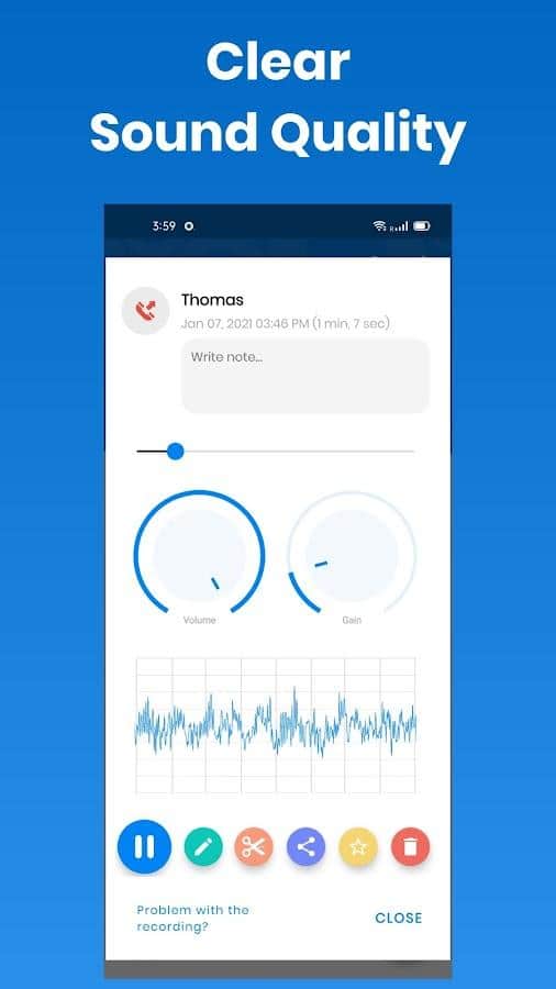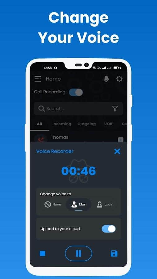 Записывайте абсолютно все аудиоразговоры, которые будут сделаны на вашем телефоне! Не важно принимаете вы звонок, или сами его производите, приложение автоматически включается и с самого начала записывает весь вызов. С помощью приложения у вас есть возможность не только получить запись телефонных разговоров, но и использовать диктофон, записать аудио из любой социальной сети или мессенджера, записать видеовстречи, изменить собственный голос и даже обрезать саму запись, которая была сделана внутри.