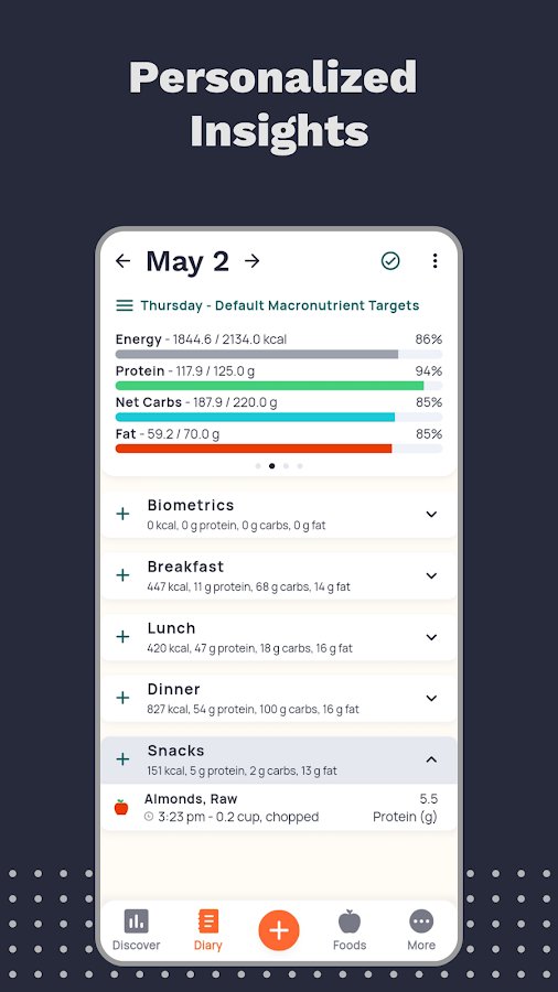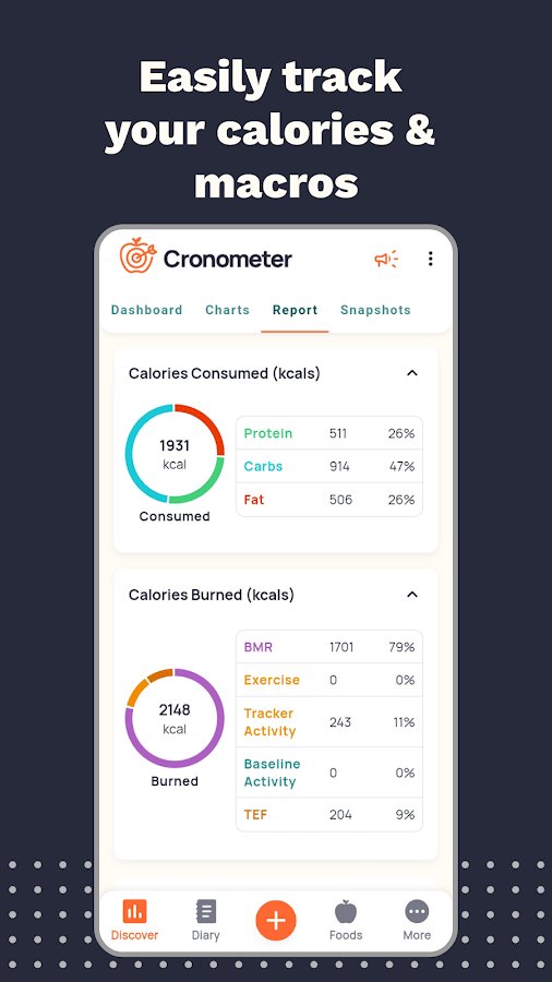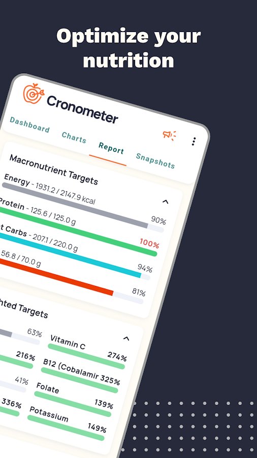 Calorie Counter by Cronometer — это мощное приложение для отслеживания калорий, макро- и микроэлементов, а также физической активности. Оно подходит для всех, кто стремится похудеть, набрать мышечную массу или просто вести здоровый образ жизни. Благодаря проверенной базе данных из 1,1 миллиона продуктов и интуитивным инструментам, приложение помогает вам анализировать питание и достигать своих целей.