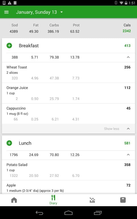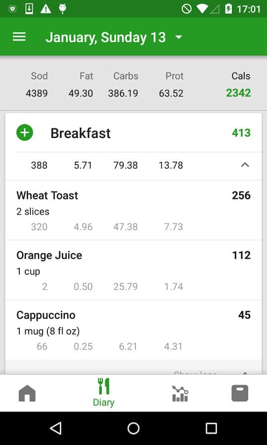 Calorie Counter by FatSecret - программа для тех кто хочет привести себя в форму, потреблять меньше калорий и похудеть. Счётчик калорий в данном случае является неотъемлемой частью вашего нового образа жизни. Всегда будьте в курсе того, что вы потребляете в пищу. Калорийность, количество жиров, белков и углеводов – это главные показатели которые вы можете узнать за считанные секунды. В приложении есть дневник, который можно вести соблюдая диету. Также дневник упражняй, записывайте в него свои упражнения и вы узнаете сколько вы скинули калорий. Приложение собирает вашу статистику и следит за вашим весом.