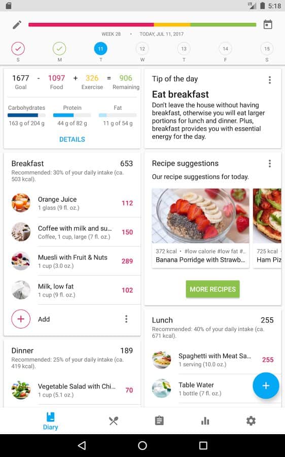 Calorie Counter & Diet Tracker - Хотите иметь шикарное тело, или хотя бы держать его в порядке? Тогда вам срочно нужно позаботиться о том как вы питаетесь. Потребленные вами калории без выхода в виде энергии просто отложатся очередной жировой складкой. Стоит так же заметить что в этом приложении можно расписать свой собственный курс по набору массы или для простой поддержки физической формы. Вариантов много и то что получится зависит только от ваших предпочтений.