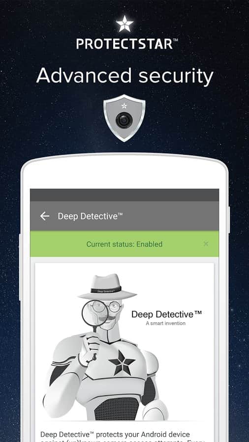 Camera Guard™ PRO - Blocker - Это приложение призвано защищать вашу личную жизнь от чужого вмешательства. Не для кого уже не секрет, что любой опытный хакер может свободно получить доступ к камере на вашем смартфоне, и тогда ваша личная жизнь может попасть под удар. В этот момент можно будет сделать не самые приятные для вас фото, которые в последствии ещё и в сеть выложат. Данное приложение не только остановит доступ к вашей камере из вне, но и полностью обезопасит ваши подключения, заблокировав любое постороннее вмешательство.
