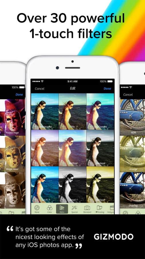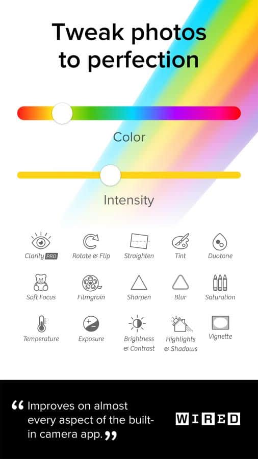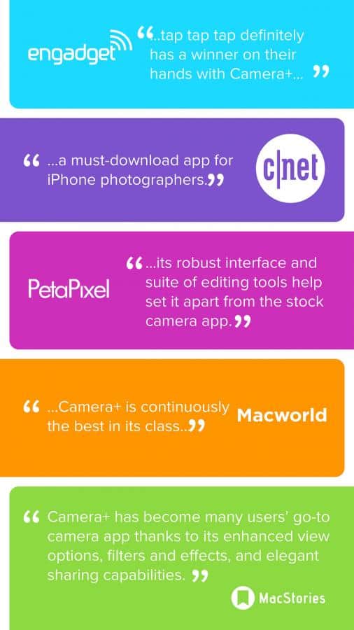Camera+ - отличная камере на ваши ios устройства с разнообразным набором функций. Эта камера обладает огромным арсеналом дополнительных функций, которые сделают ваши телефоны профессиональными фотоаппаратами. Если вы любите фотографировать, но у вас редко получаются достойные снимки, то это приложение создано для вас. С помощью него вы сможете отлично фокусировать объект, стабилизируя камеру, менять освещение используя цифровую вспышку, а также подписать фотографии и разослать их своим друзьям. Используя это приложение у вас, всегда будут получаться качественные фотографии за счет алгоритмов обработки изображения, которыми обладают камеры нового поколения.