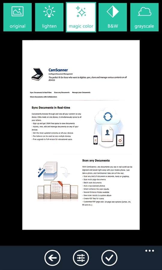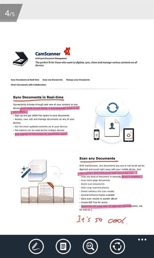 CamScanner – отличное приложение для пользователей Windows Phone 8, с помощью которого вы сможете быстро и просто отсканировать необходимый документ, а так же редактировать и совместно управлять им на всех устройствах. Скачиваем, пробуем и используем каждый день.