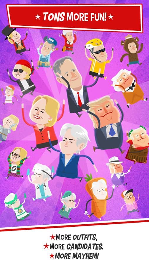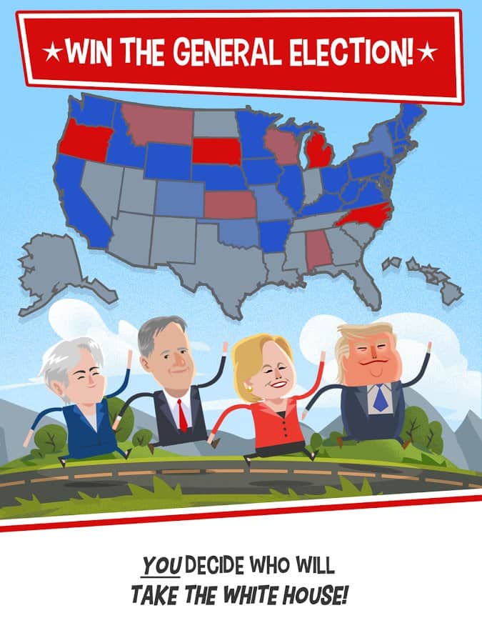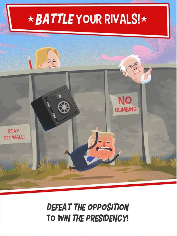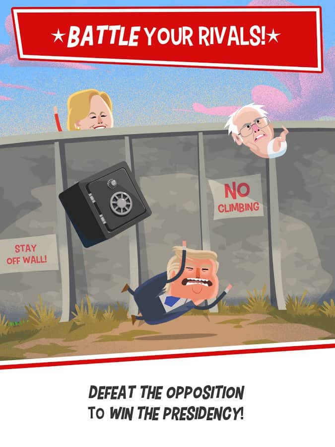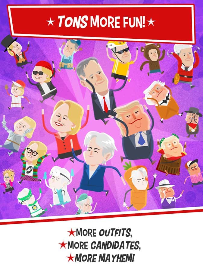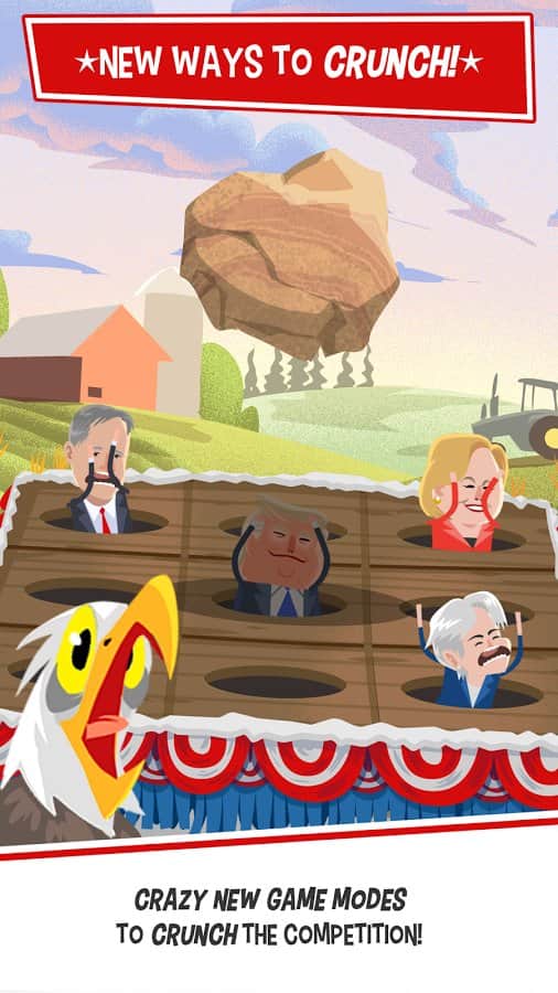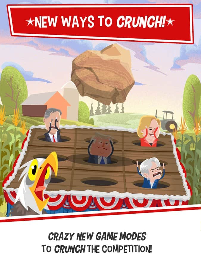 Candidate Crunch - Мечтаете раздавить всех политиков? Теперь ваша мечта стала реальной! В этой игре вам предстоит либо давить всех политиков, либо спасать их от падающих предметов. В этой игре весьма забавная графика, в которой политики будут превращаться в блинчики после падения сейфа, или же рыдать как дети от того что на них упал рояль. В целом игра очень простая но весьма забавная. Раздавите всех вражеских кандидатов, и оставьте в живых только своего, и тогда вам точно удастся сдать президентом.