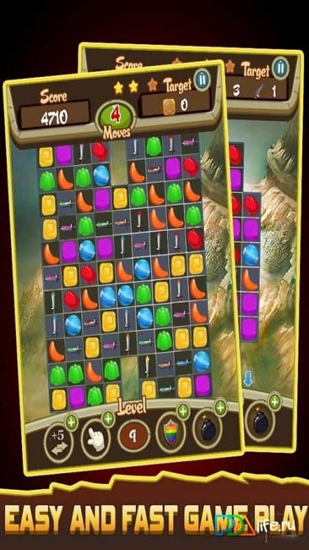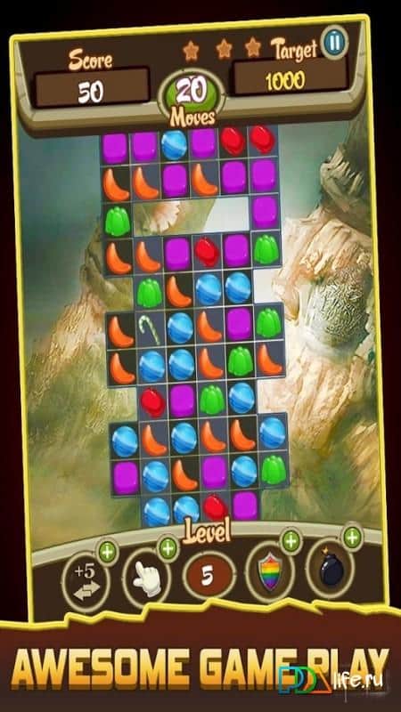 Candy Crusade – отправляйтесь в опасное путешествие в средневековый мир где вы встретите рыцарей и королей. В этой игре вы будете выступать в роли рыцаря, которому силой своего ума необходимо победить соперников. Составляйте по три и более одинаковых конфет в ряд и старайтесь очистить поле от них. Составляйте длинные ряды и получайте в возможность заработать отличные бонусы в виде мечей. Применяйте свои умения и бонусы и с легкостью проходите уровни, поднимаясь все выше в таблице лидеров. Зарабатывайте по три звезды на уровне и используйте разрушительные комбинации конфет.