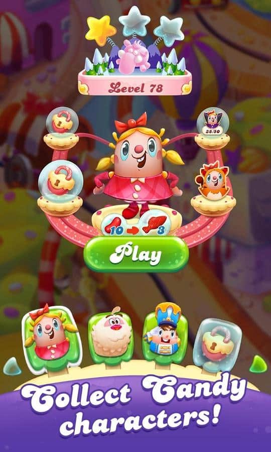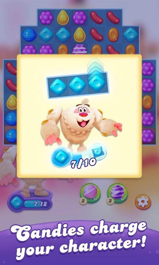 Candy Crush Friends Saga – захватывающая игра из жанра три в ряд где вы будете путешествовать по всему Candy Kingdom. Составляйте ряды из трех и более конфет и собирайте нужные вам предметы, чтобы завершить уровень и получить по три звезды за каждый из них. Старайтесь составить как можно длиннее ряды из конфет и повышайте свою силу. Проделывайте комбо удары и получайте награды в качестве бонусов и усилений, которые позволят вам быстрее завершить уровень. Наполните вкусными угощениями и конфетами свои сундучки и пройдите все 70 уровней. Играйте в эту игру и получайте максимум удовольствия от красочной графики, разнообразных уровней и многочисленных персонажей.